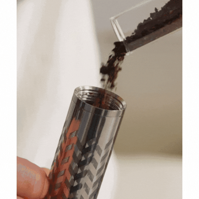粉や茶葉は計量不要で本体メッシュフィルターカップの8分目まで(約15g)入れればOK!