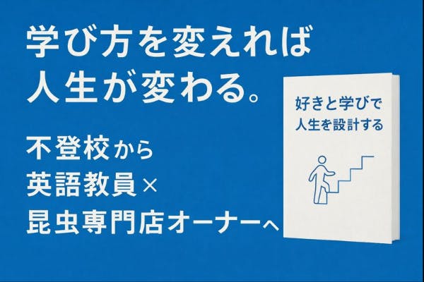 本書『好きと学びで人生を設計する——不登校から英語教員×昆虫専門店オーナーへ(仮)』は、自分の人生に“再現性のある成長の仕組み”をつくるための実践書です。