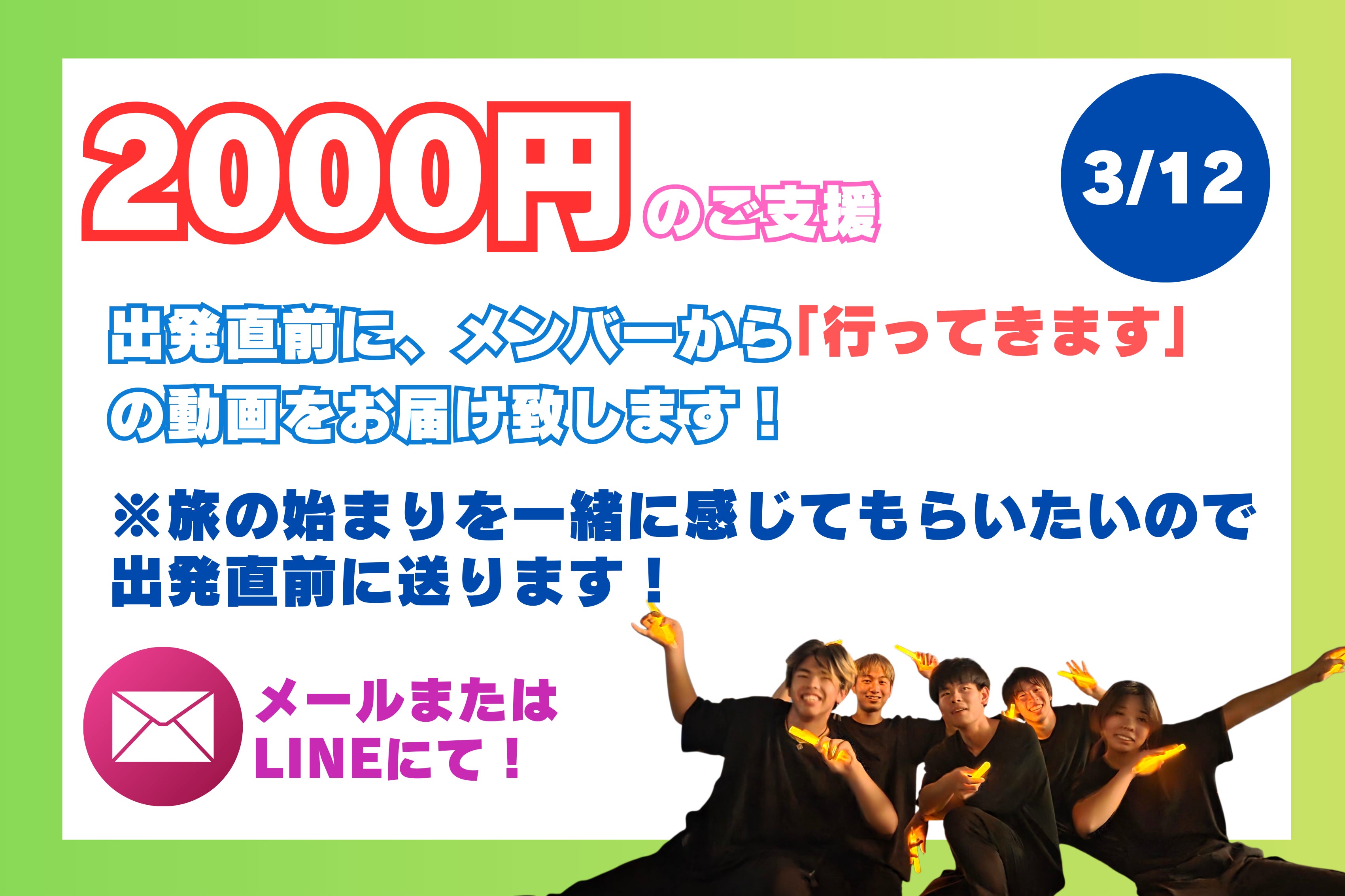 あなたの応援が、『五人の未来ある若者の人生を支える希望の灯』になり徳を積むことでしょう。
