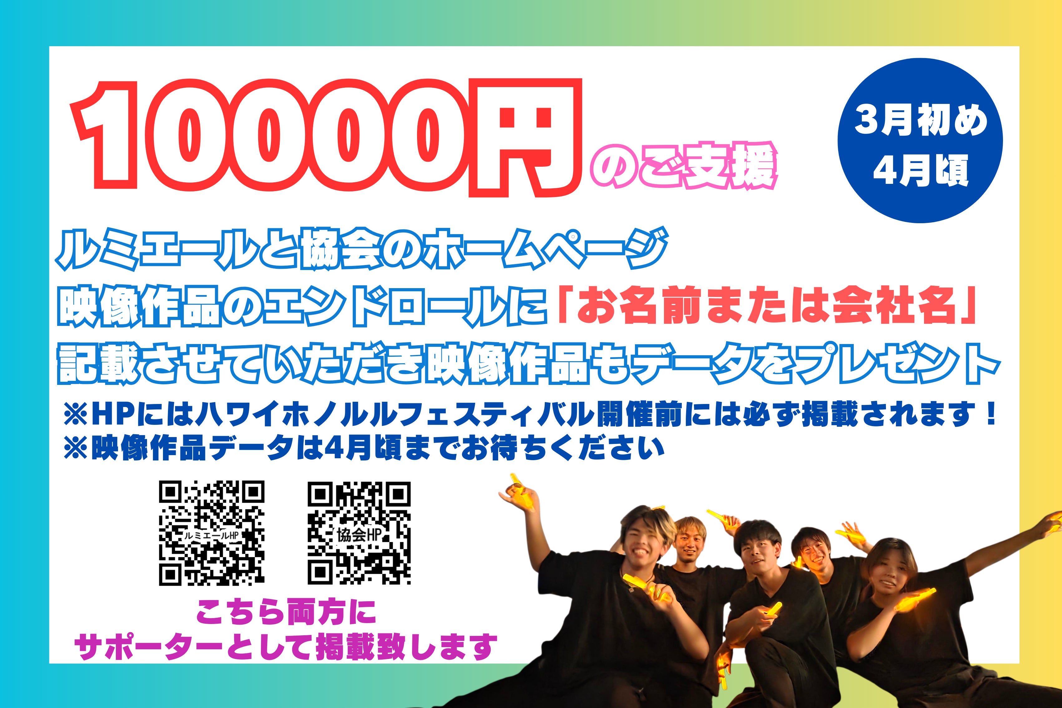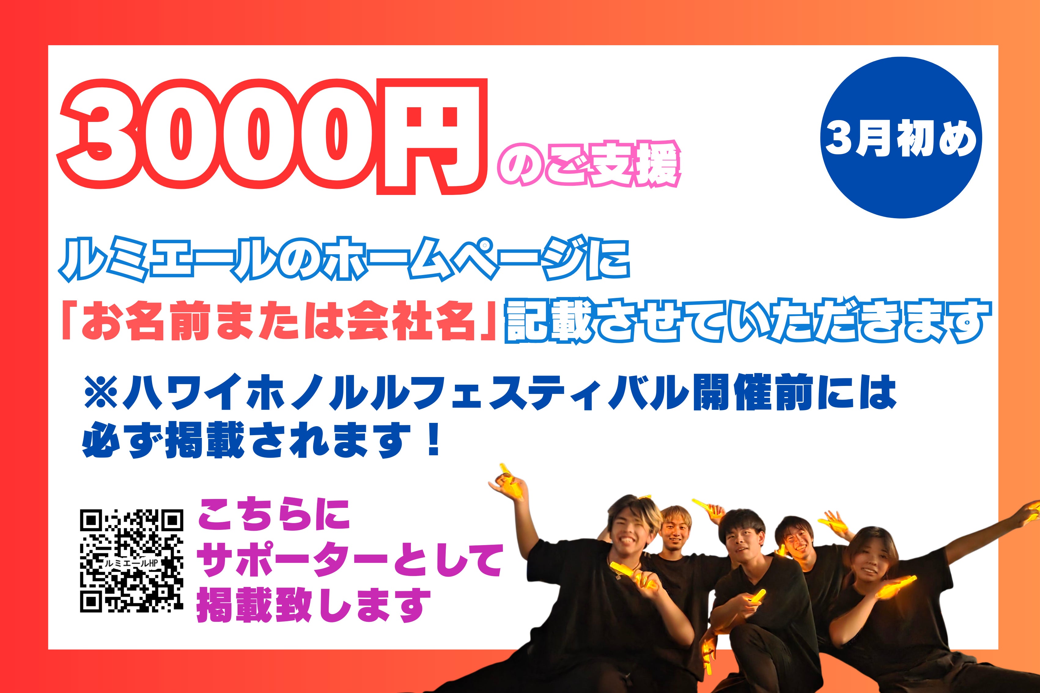 今回のハワイ公演は、ただの海外公演ではなく、日本発のサブカルチャーであるヲタ芸(WLD)を世界に発信し、日本へ誇りとして持ち帰る大きな一歩です。皆さまからのご支援一つひとつが、ステージの光となり、未来へ続く道となります。どうか私たちと一緒に、ヲタ芸(WLD)を次の世代に誇れる文化として育てていく仲間になってください。
