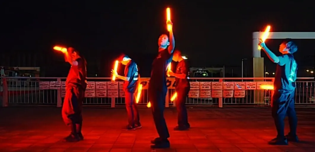 炎が空を描くように、サイリウムは夜空に光の軌跡を描き、集中力と一体感が観客の心を掴む。