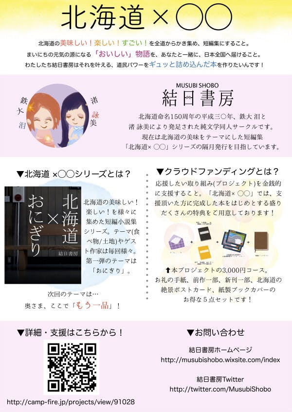 第三回文学フリマ札幌にて、「北海道×●●」シリーズ第一弾である「北海道×おにぎり」を発行、頒布しました。