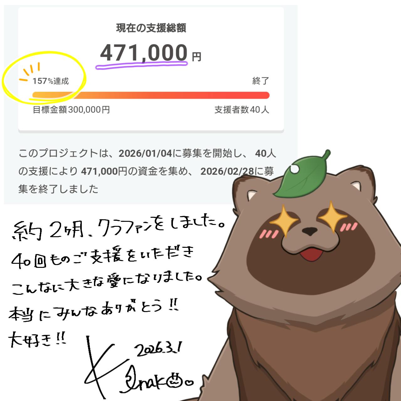 約二ヶ月間のクラファン、