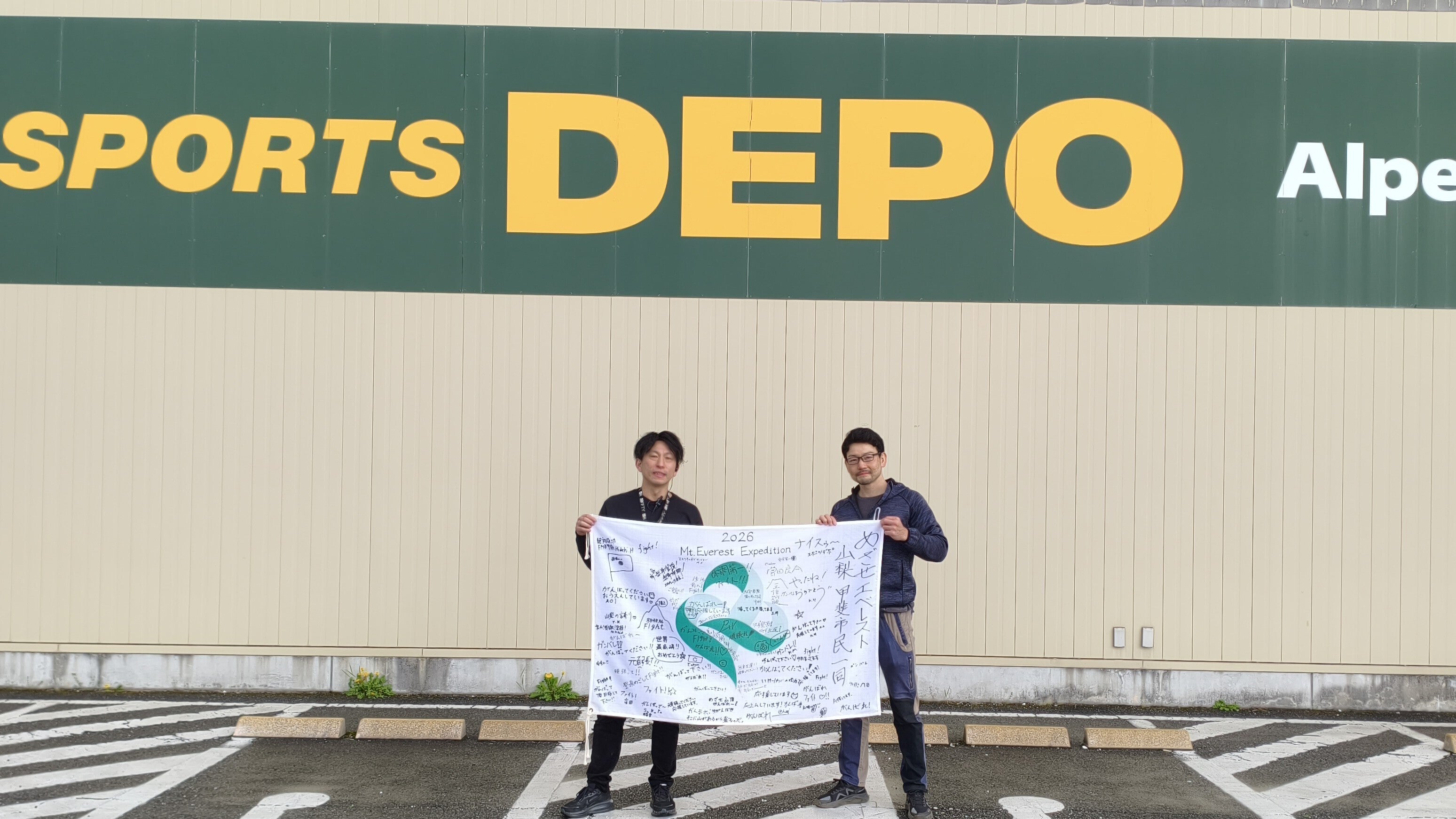 2026/03/31 15:08スポーツDEPO甲府昭和インター店に展示させて戴いていた“市旗”を受け取りに行ってきました。一ヶ月半に渡り、来店されたお客様からエベレストの頂上へ携えて行くべく、応援のメッセージを募った結果、沢山のお言葉を頂戴する事が出来ました。 メッセージが書かれた旗には、まだチャンと焦点を合わせていません。現地での休息日などに、何が書かれているかを眺める愉しみとしてストックしておきます。 ご協力して下さったスポーツDEPO甲府昭和インター店の皆様、ならびに応援メッセージを書いて下さった皆様に心から感謝を致します。 ジェットストリームで飛ばされない様に気をつけながら頂上で掲げたいと思います。 もっと見る