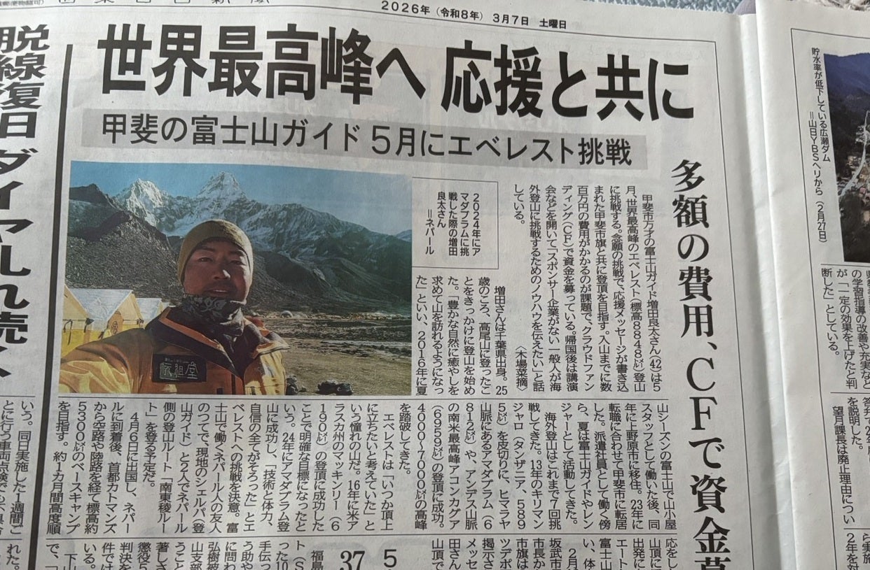 UTYテレビ山梨の夕方情報番組『スゴろく』にて、今回のエベレスト挑戦を紹介していただきました。テレビ山梨様、ありがとうございました!!