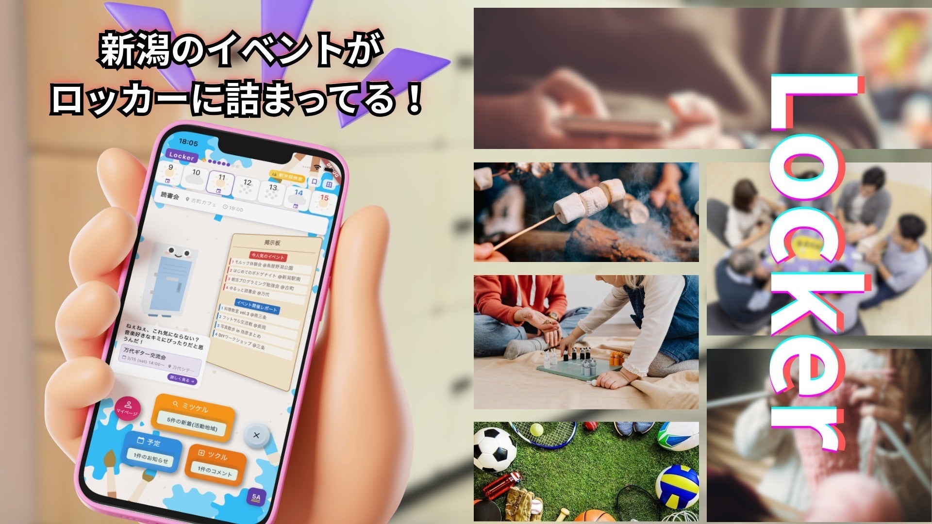 新潟のイベントがロッカーに詰まってる -そのキャッチフレーズの通り、あなたの街で開かれる小さくて温かいイベントを、一つのアプリで見つけられるようにします。