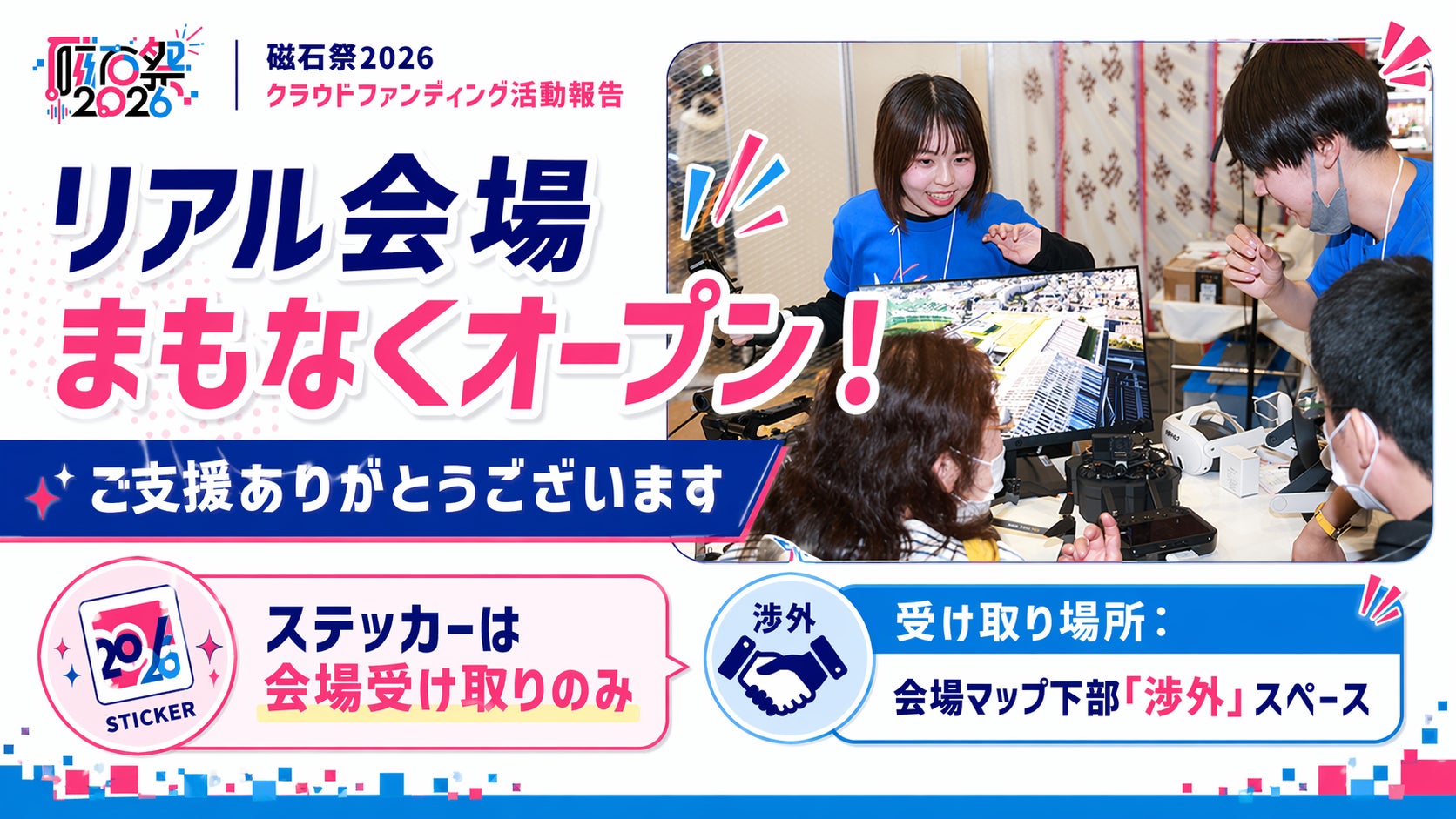 このたびは、磁石祭2026のクラウドファンディングに温かいご支援を賜り、誠にありがとうございます。いよいよ、リアル会場のオープンが間近となりました。