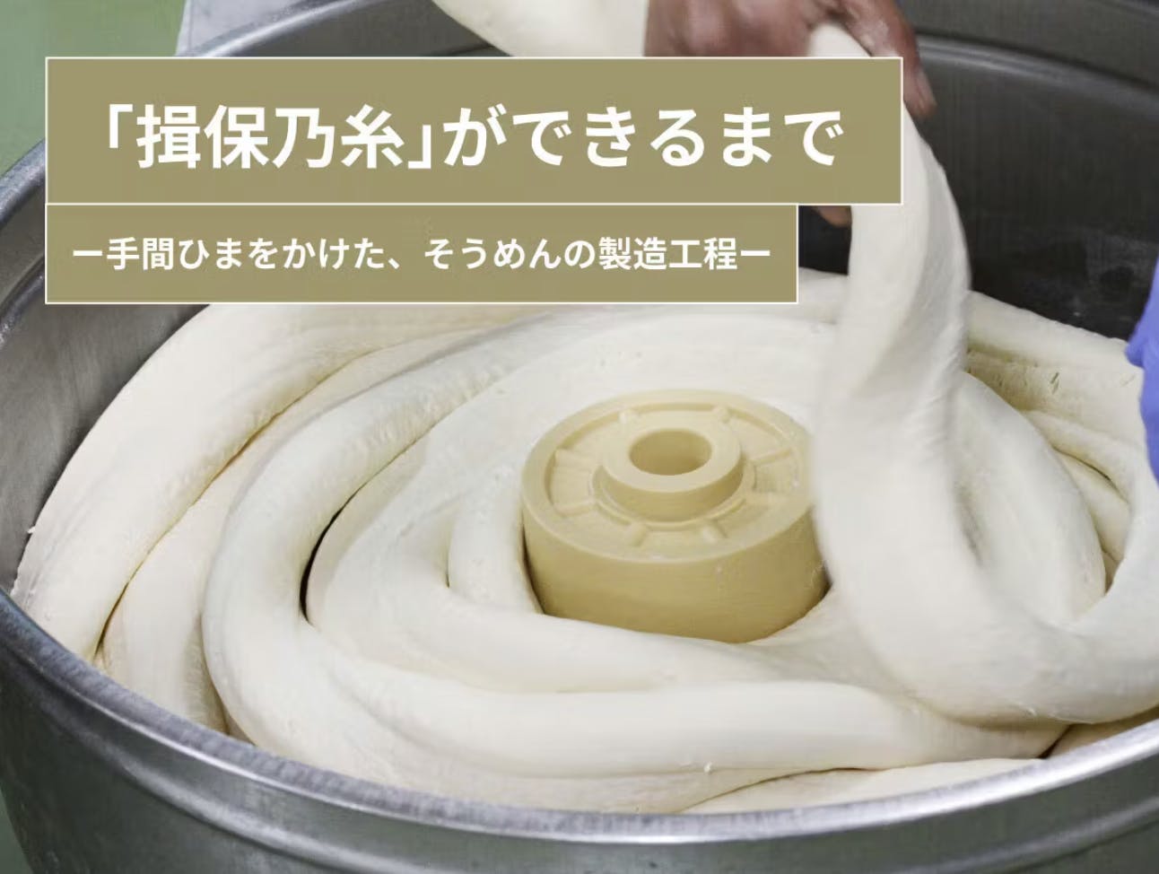 普段は目にすることのない製麺の工程。今は多くが機械化されていますが、生地を「ねかし」「延ばす」ことを丁寧に繰り返す作り方は、600年前から変わっていません。そうめんを召し上がる際には、「そうめんができるまで」に思いを巡らせてみてはいかがでしょうか。
