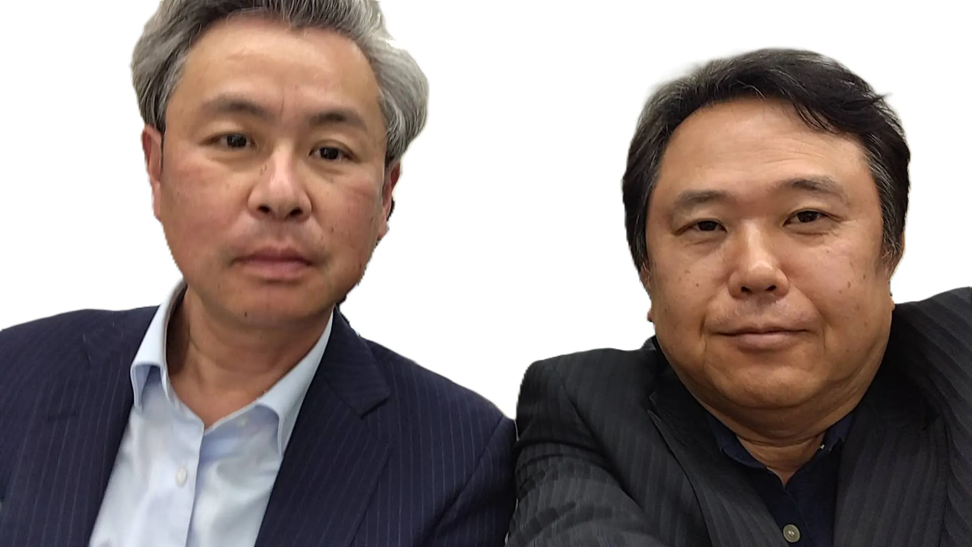 [チーム全体の集合写真 左側:営業担当/鈴木正巳、 右側:開発担当/谷口謙二]