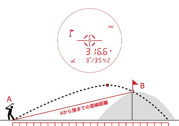さらに、障害物などで直接コース状況が確認できない場合でも、仲間やコーチが別の角度からフラッグまでの距離を測定する、といった使い方も可能です。コース全体を立体的に把握し、戦略的なプレーをサポートします。