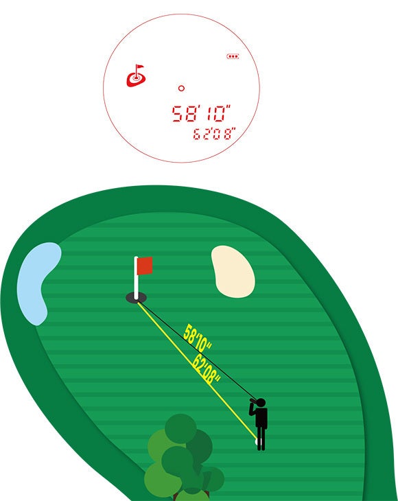 打ち上げや打ち下ろしのショットでも、距離の誤差を自動で補正。さらに、使用者の身長まで考慮して計算するため、より正確な距離を把握できます。これでもう、斜面で距離感を間違える心配はありません。
