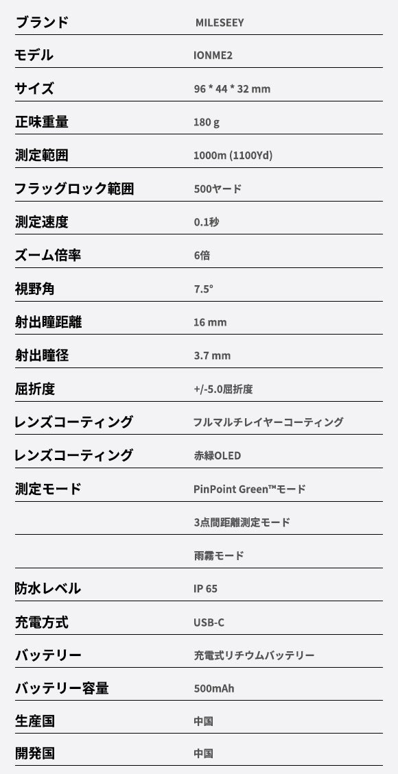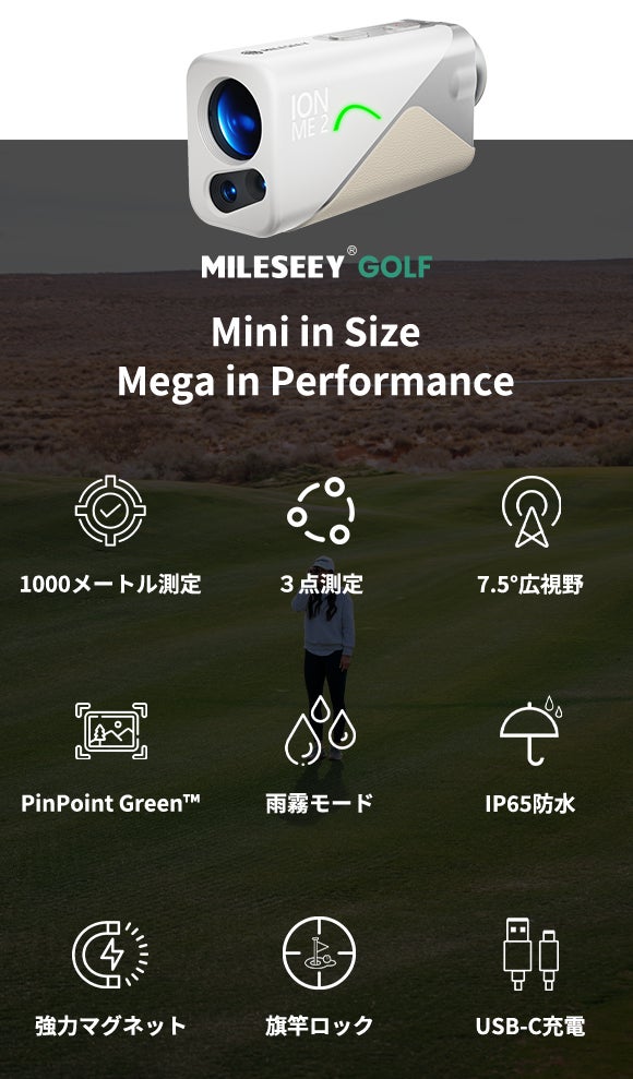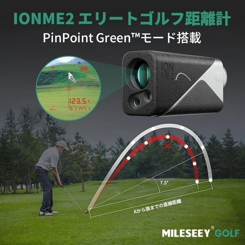 MILESEEY IONME2(マイルシー アイオンエムイーツー)は、長距離の正確かつ高速な測定に加え、グリーン上の距離や傾斜まで瞬時に把握できる、新時代のゴルフ距離計です。