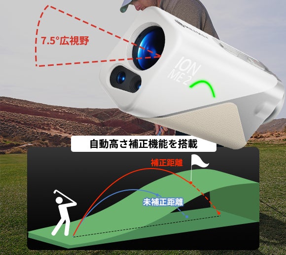 IONME2は、7.5°の広い視野角、90%を超える高透過率、6倍ズームを搭載し、遠くのターゲットを素早く鮮明に捉えることができます。フラッグの位置はもちろん、グリーンの微妙な起伏まではっきりと視認でき、コース全体を見渡しながら最適なショットを組み立てることが可能です。
