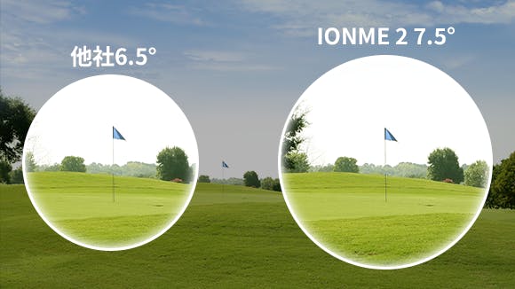 IONME2は、7.5°の広い視野角、90%を超える高透過率、6倍ズームを搭載し、遠くのターゲットを素早く鮮明に捉えることができます。フラッグの位置はもちろん、グリーンの微妙な起伏まではっきりと視認でき、コース全体を見渡しながら最適なショットを組み立てることが可能です。