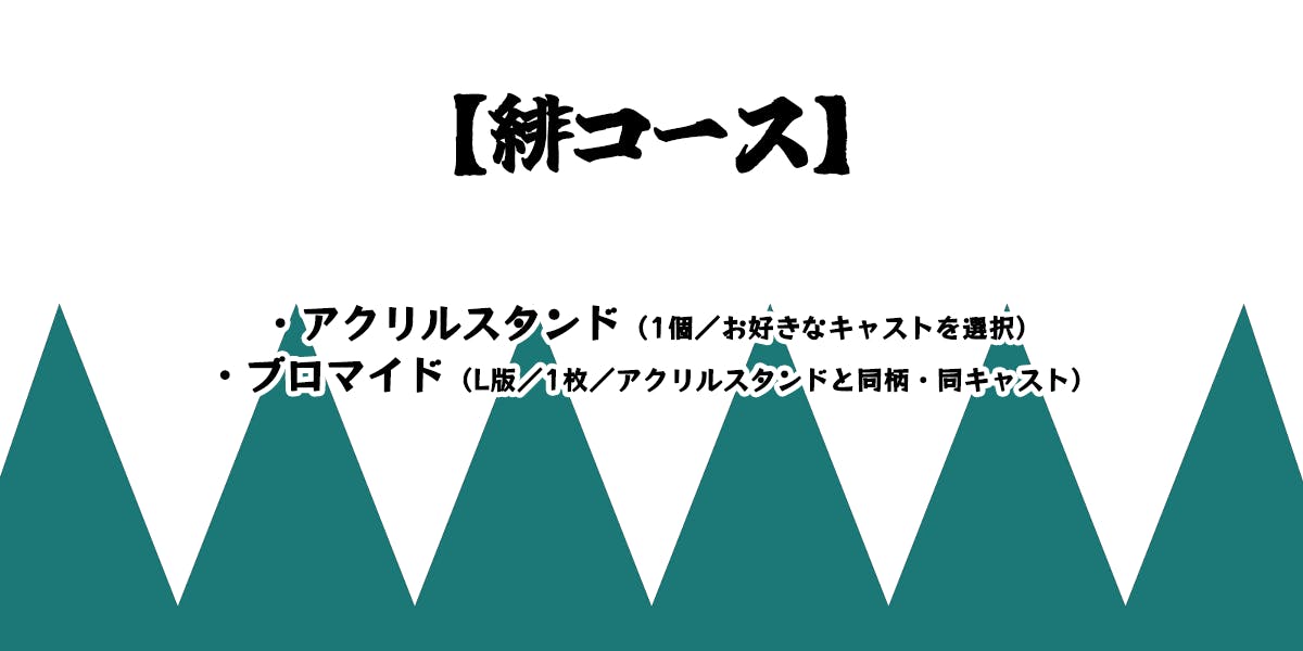 2026/02/04 08:35緋コースアクリルスタンドがが大変ご好評をいただいております。ありがとうございます!公演を終えて、ご要望をいただき下記キャストは種類をご選択いただけることとなりました。永島真之介:坂本龍馬/岡田以蔵/土方歳三山田奈津美:沖田総司/榎本武揚三枝聖:斎藤一/藤田五郎池田明日香:桂小五郎(洋装)/桂小五郎(和装)過能光希:高杉晋作/和泉蓮太郎キャストをご選択の上、備考欄に希望キャラクターのご記入をお願いいたします。いよいよプロジェクト実施は明日まで!よろしくお願いします! もっと見る