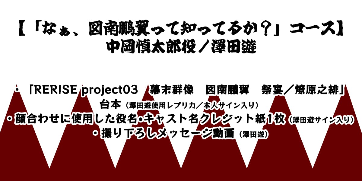 【「なぁ、図南鵬翼って知ってるか?」コース】中岡慎太郎役/澤田遊 12,000円 2本限定!