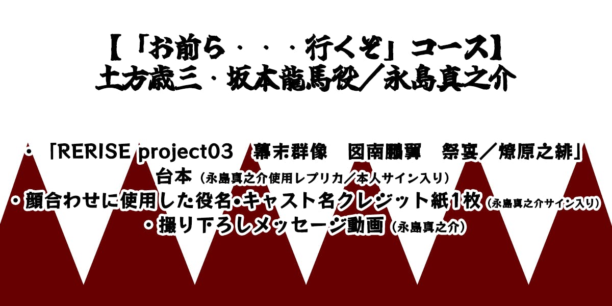 【「お前ら・・・行くぞ」コース】土方歳三・坂本龍馬役/永島真之介 15,000円 1本限定!
