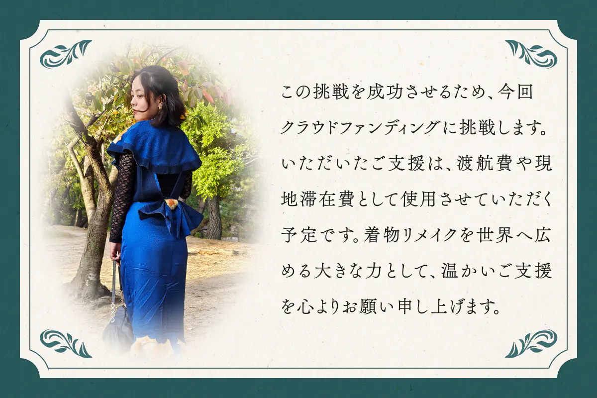 私の夢である着物リメイクの選択肢を大きく広める第一歩を、応援していただけませんか?