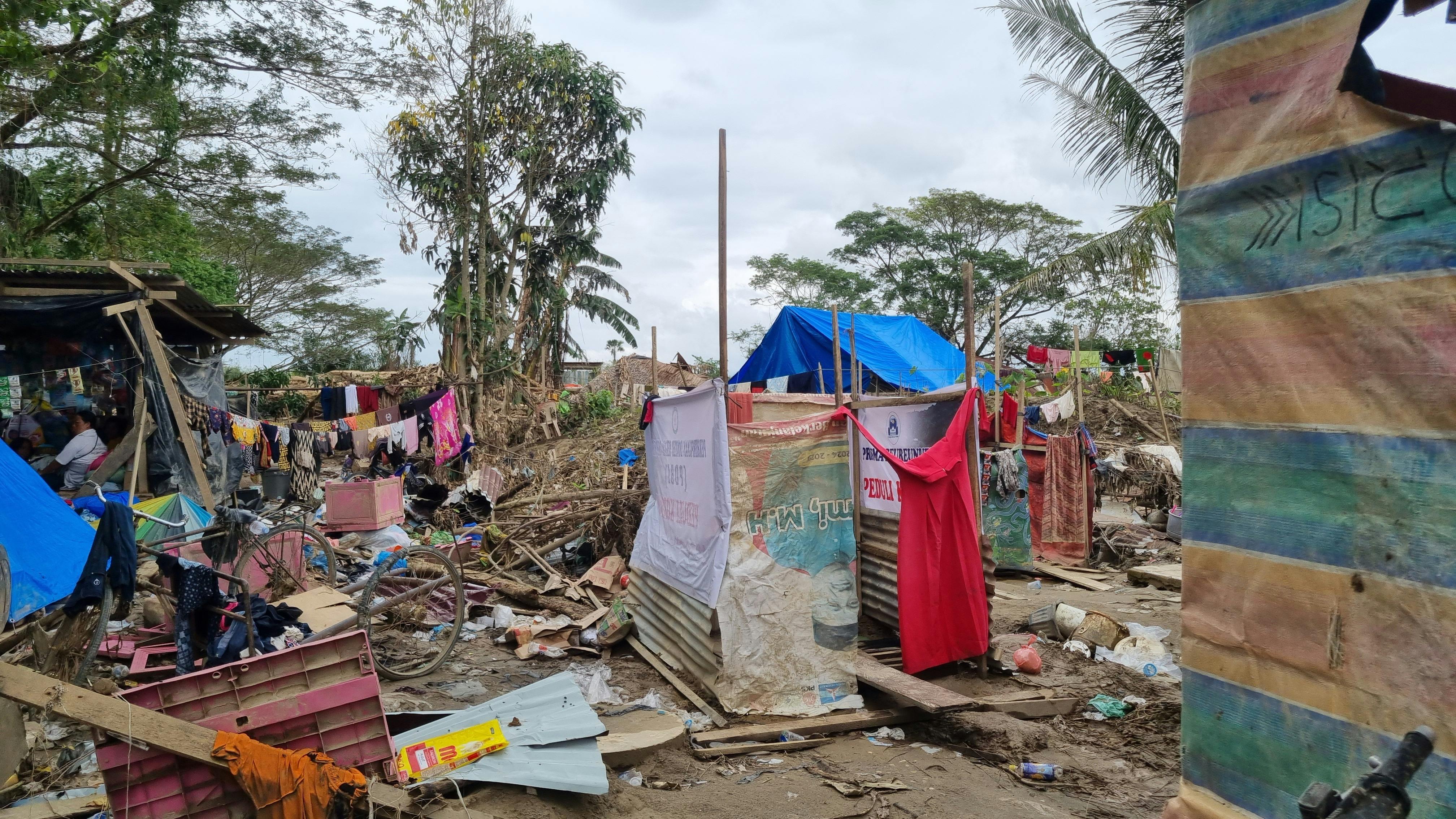 食料や水など最低限の物資も不足するなか、瓦礫の片付けといった復旧作業や、住環境の改善にはなかなか支援が及びません。かろうじて届いた支援物資のテントなどに身を寄せ合い、寝泊まりする場所を確保しています。