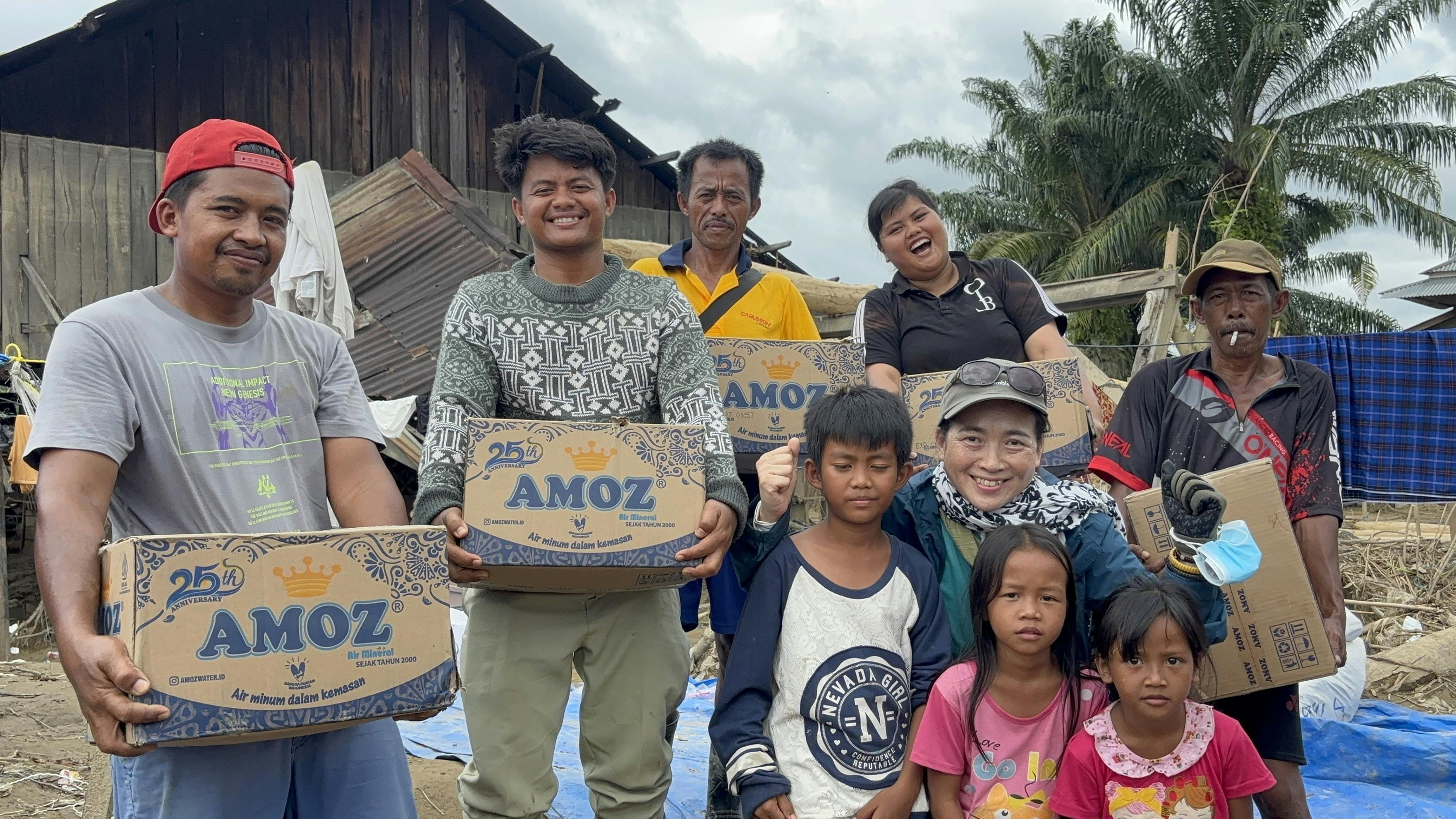 私たちは西海岸側の被災地である北スマトラ州中央タパヌリ県にも足を運び、提携団体とともに物資配付を行いました。道中では土砂崩れが発生し、家や道路が崩壊、車両の往来にも大きな影響が出ていました。同じ洪水の被害でも、各地で異なる被災の状況とニーズを目の当たりにしました。