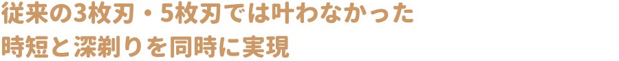 従来の3枚刃や5枚刃と比べ、肌の往復回数を大幅に減らせるため、髭剃り時間が半分以下に短縮できます。さらに、刃の並びを最適化することで、太く硬い髭も根元からカットします。