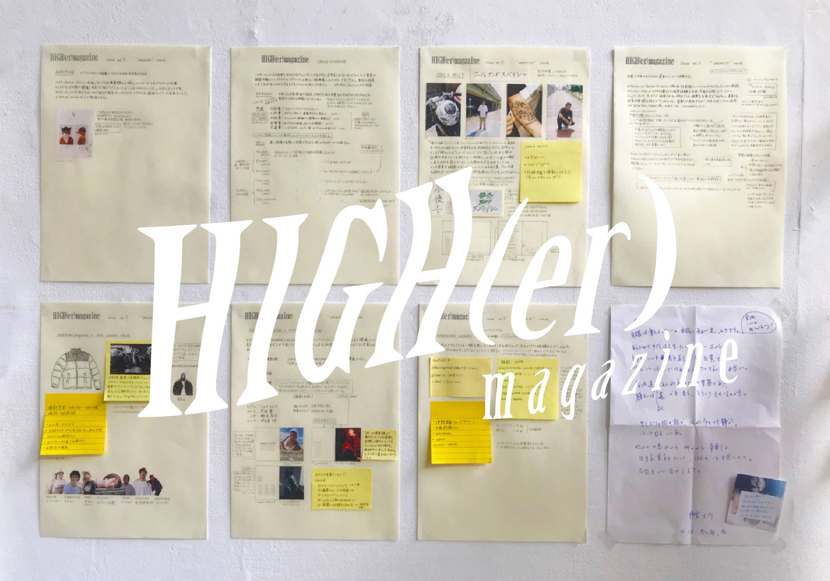 編集長のharu.がドイツに留学していたときに始めたZINE作りを日本でも続けたいという思いから、日本の美術大学に入学と同時に周りにいるクリエイターに声をかけて生まれたのがHIGH(er)magazineです。現在主に動いているメンバーは二人ですが、毎号たくさんの素晴しいクリエイターたちに助けられコンテンツを制作しています。