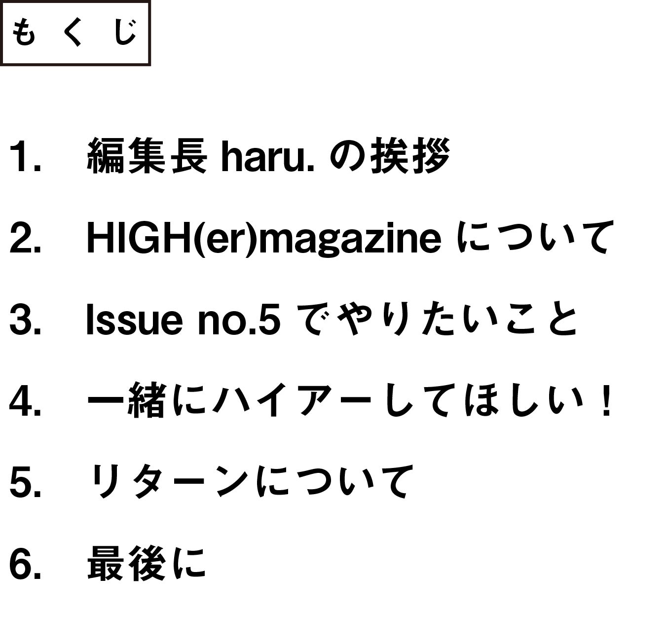 インディペンデントマガジンHIGH(er)magazineの編集長のharu.です。