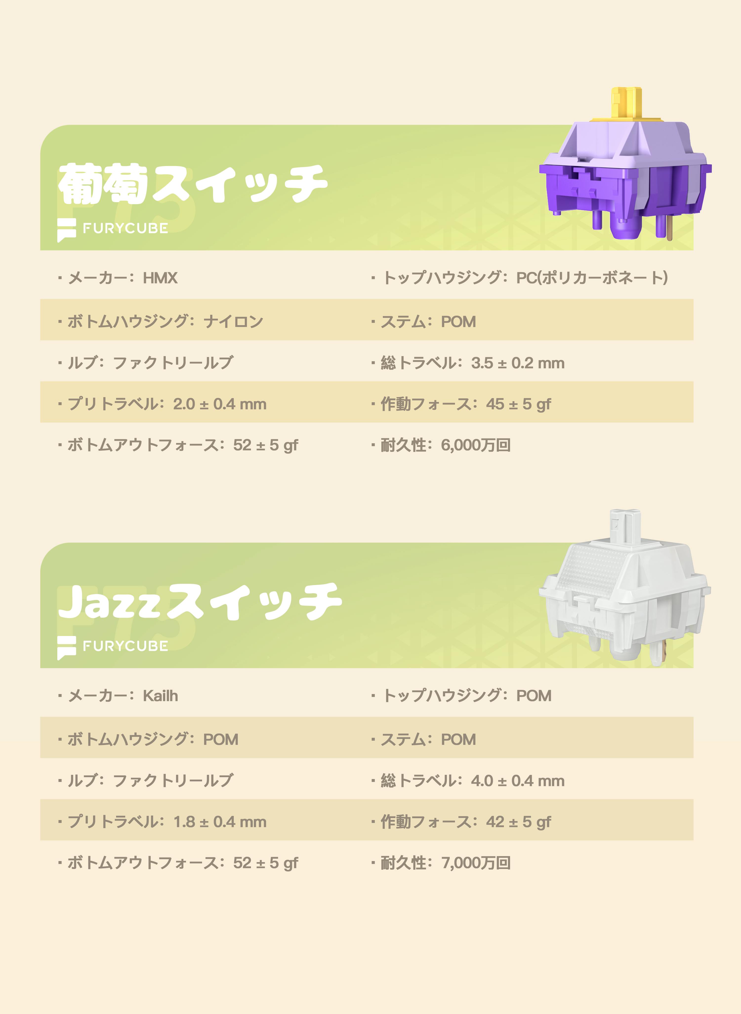 Proモデルには、滑らかで安定した押し心地が特長のHMX社製「葡萄」スイッチを搭載。長時間のタイピングでも疲れにくい、バランスの取れた打鍵感を実現しています。