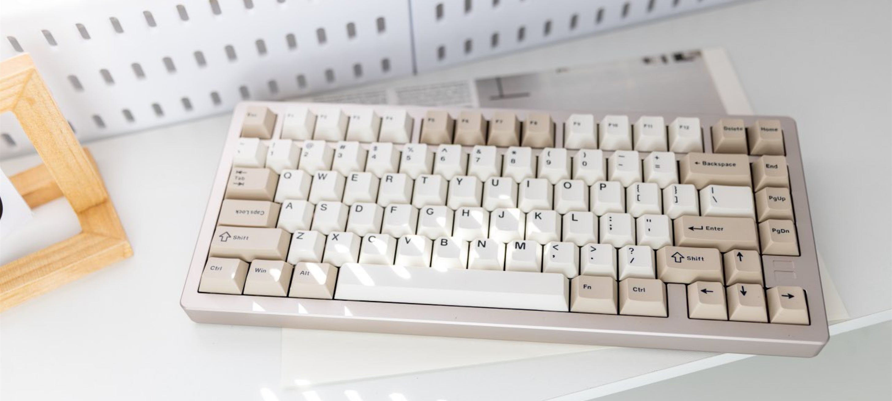 65%では物足りず、フルサイズでは大きすぎると感じる方に向けて、実用性と省スペース性のバランスを重視して設計しました。 デスク周りをすっきり保ちながら、日常作業に必要なキーをしっかりと備えています。