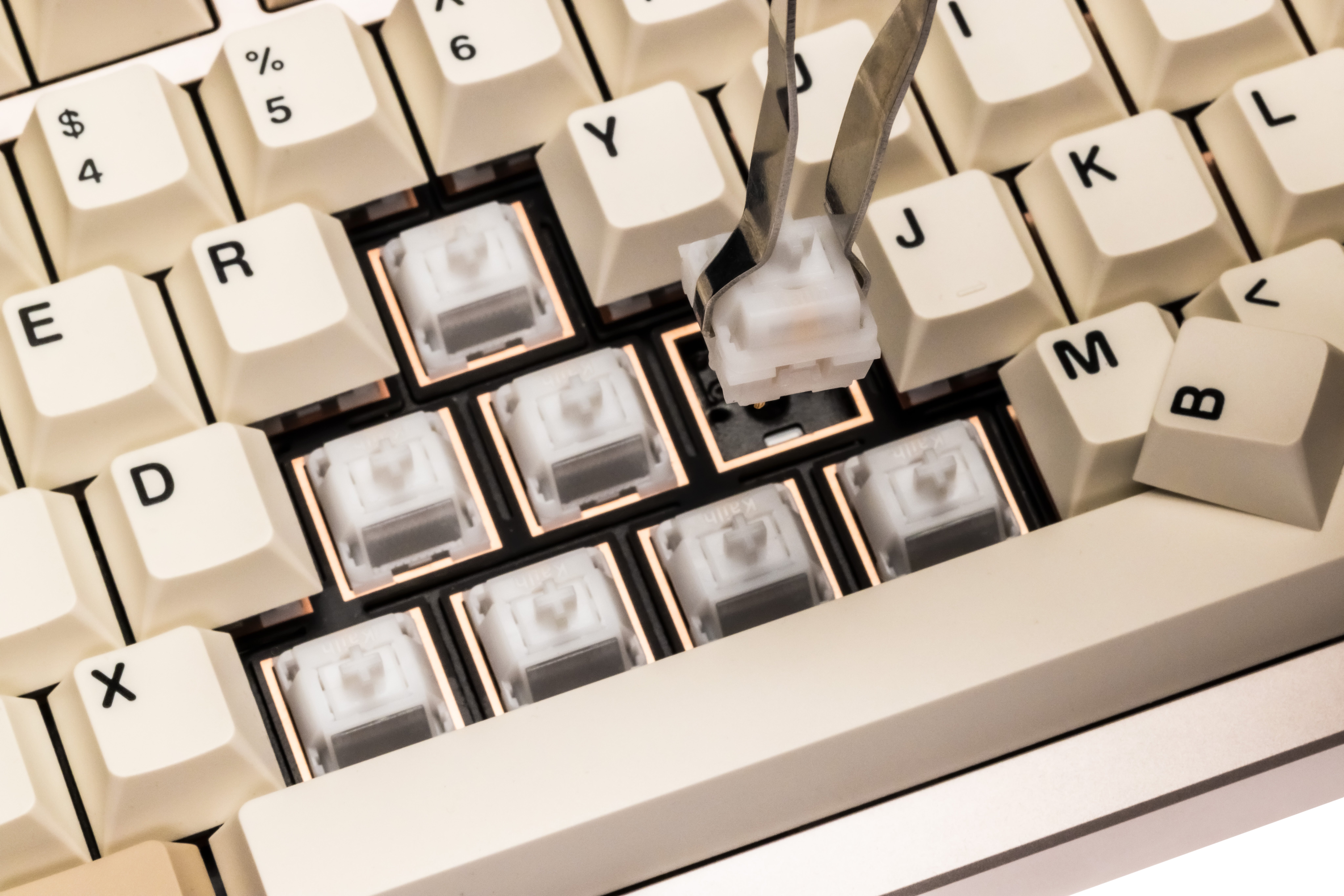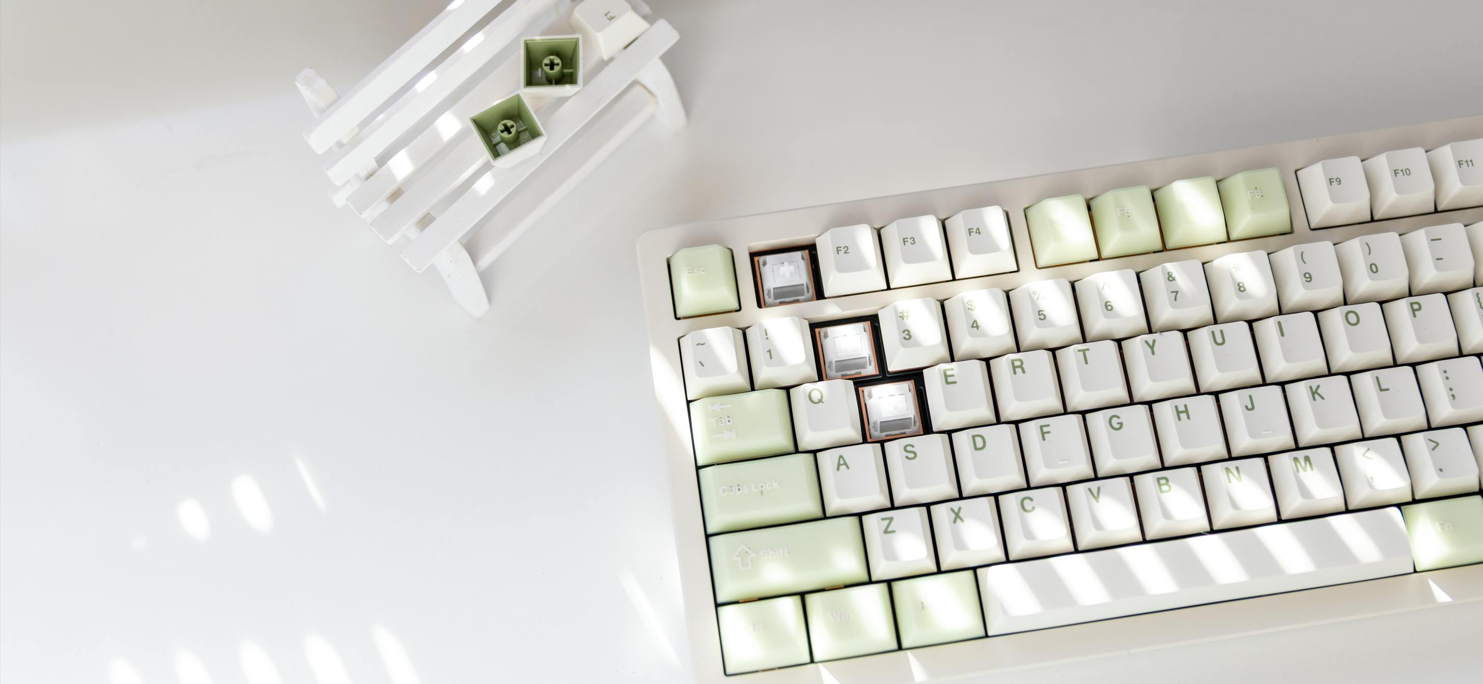 US配列のUltraモデルでは、全モデルにPBTダブルショットのキーキャップを採用しています。 また、Golden Pinkを除く両モデルに半透明デザインのキーキャップを用いることで、光をやわらかく通し、軽やかで透明感のある印象に仕上げました。
