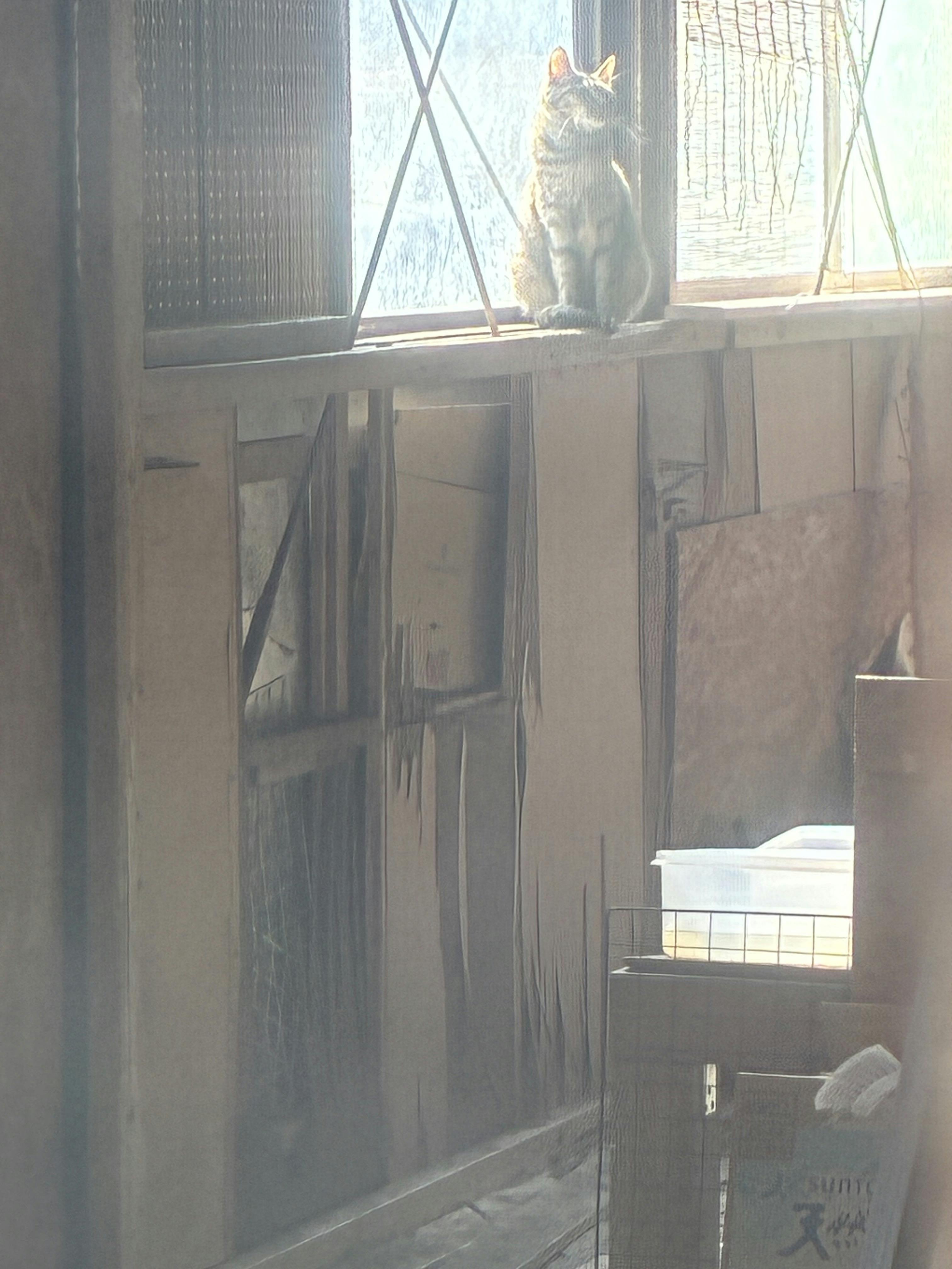写真は今どうにかしたい場所のねこさん。倉庫内にねこがたくさんいる様子、