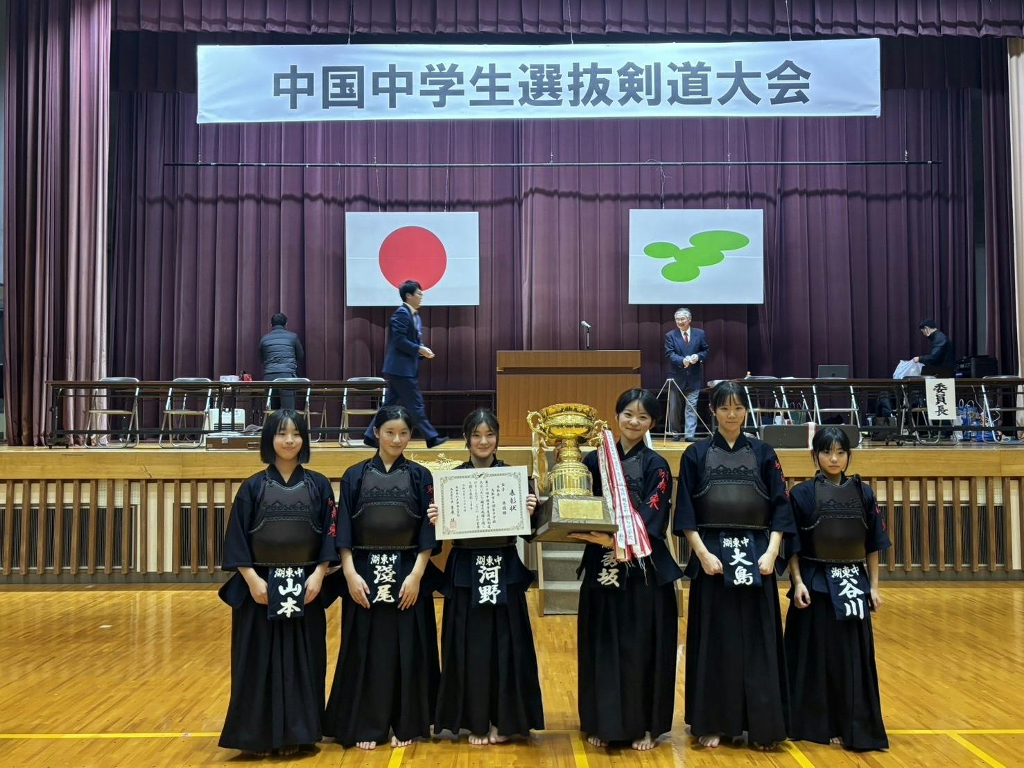 はじめまして。鳥取市立湖東中学校剣道部保護者会会長の長谷川建一と申します。私たちの剣道部は、令和7年度には全国大会出場という快挙を成し遂げることができました。そして先日の東部地区秋季大会では、女子団体において優勝、個人戦でも複数の部員が県大会出場を決めるなど、着実に力をつけています。