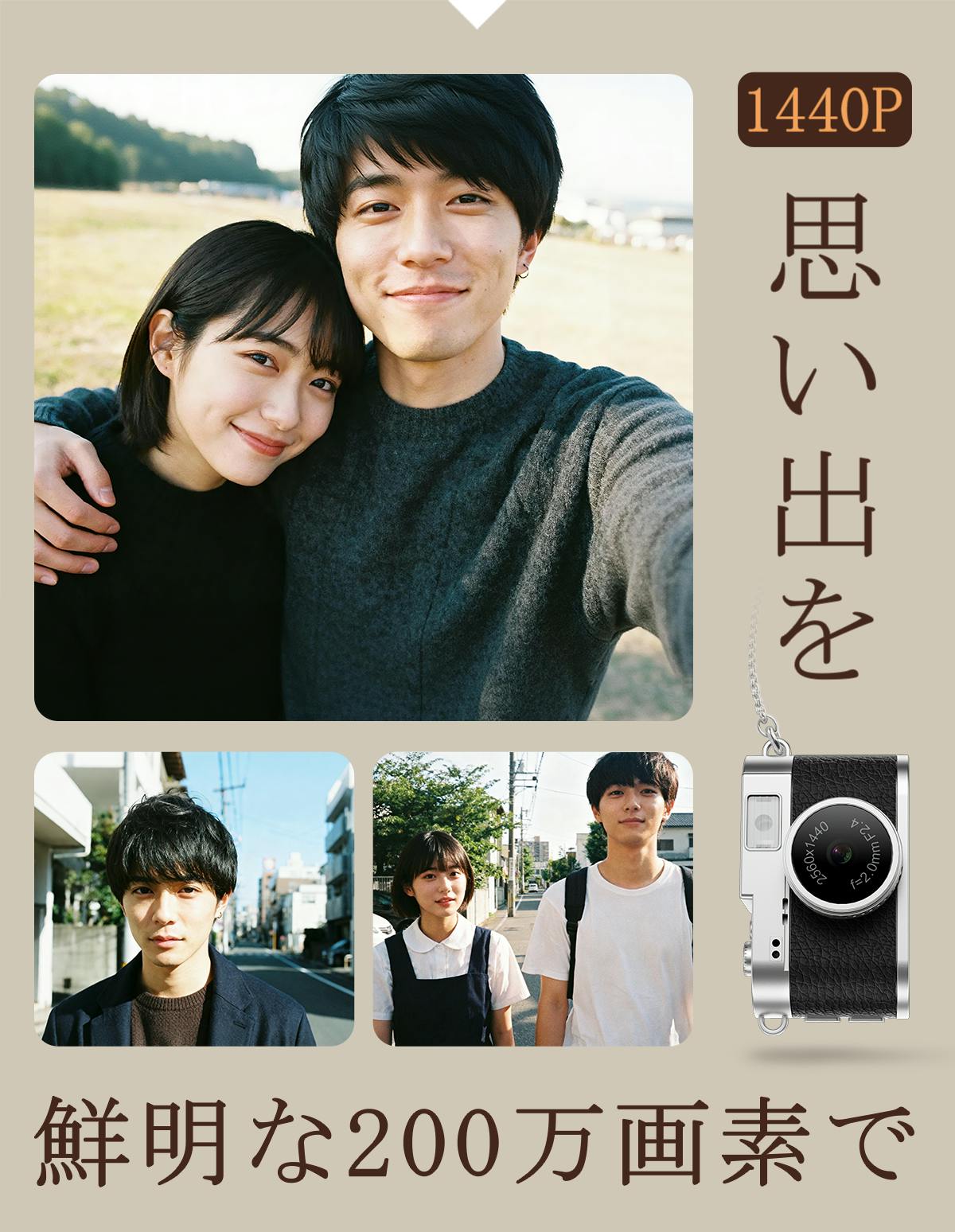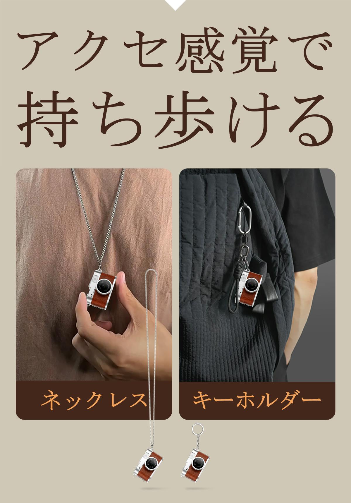 キーホルダーやネックレスとして、あなたの日常に自然に溶け込みます。カメラであることを忘れてしまうほど軽やかな装着感で、思いついた瞬間を逃しません。