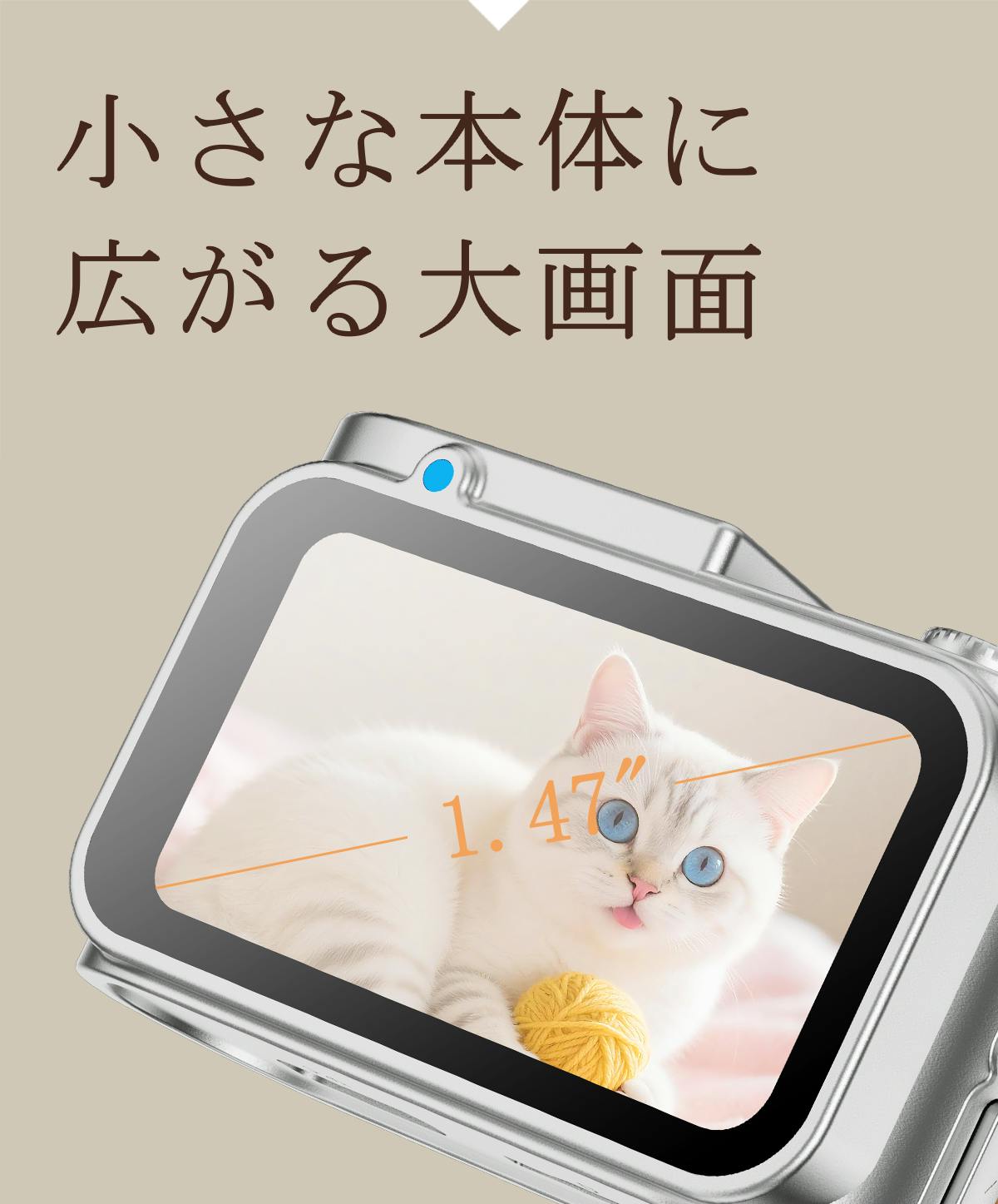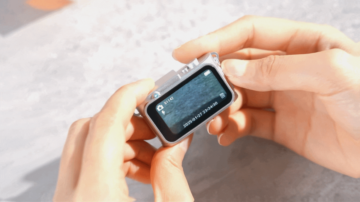 コンパクトな本体ながら、鮮明で発色の良い1.47インチのIPS液晶を搭載。屋外での閲覧もストレスなく、撮影したその場で画像や動画をしっかり確認できます。