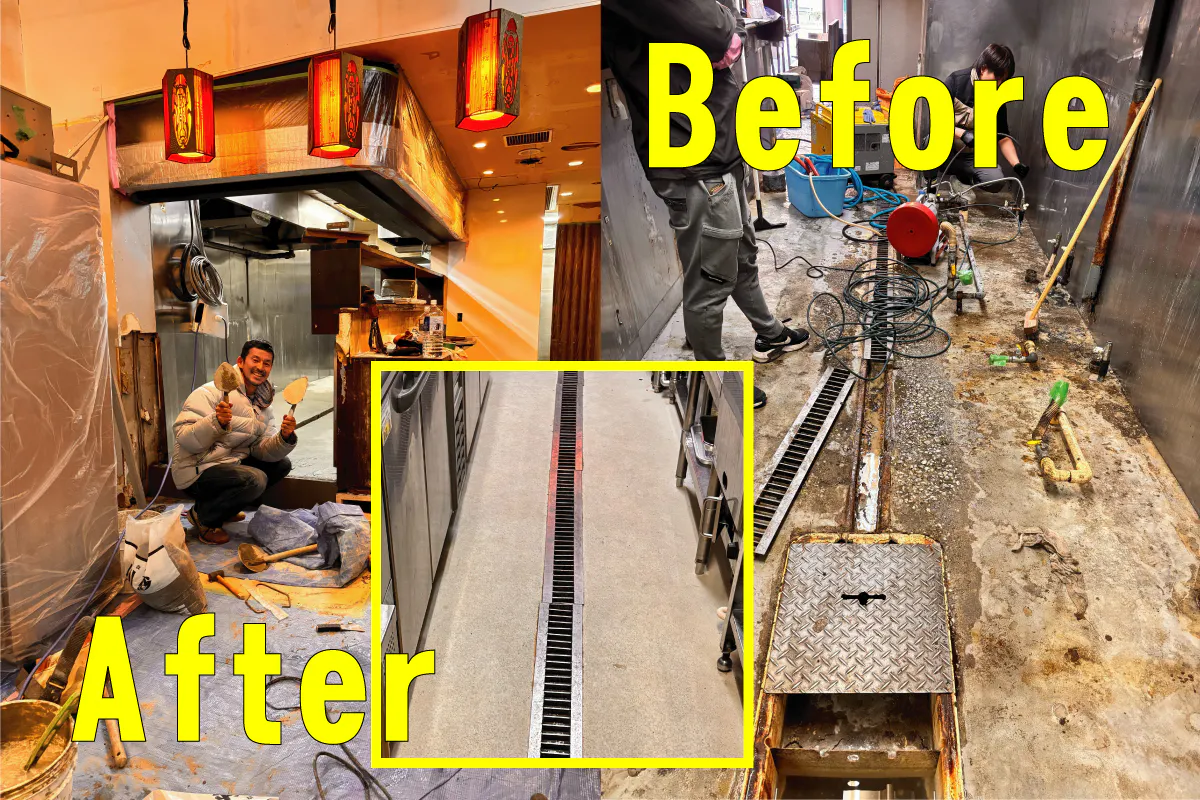 中古物件の一番の敵である汚れは、直接お客様への安心や信頼に繋がる事なので、第一優先として徹底的に工事致しました!不意を突かれる問題も数多く発生し、予想以上に大変でしたが、職人さんたちのプロの技でとってもキレイな店内に生まれ変わりました!