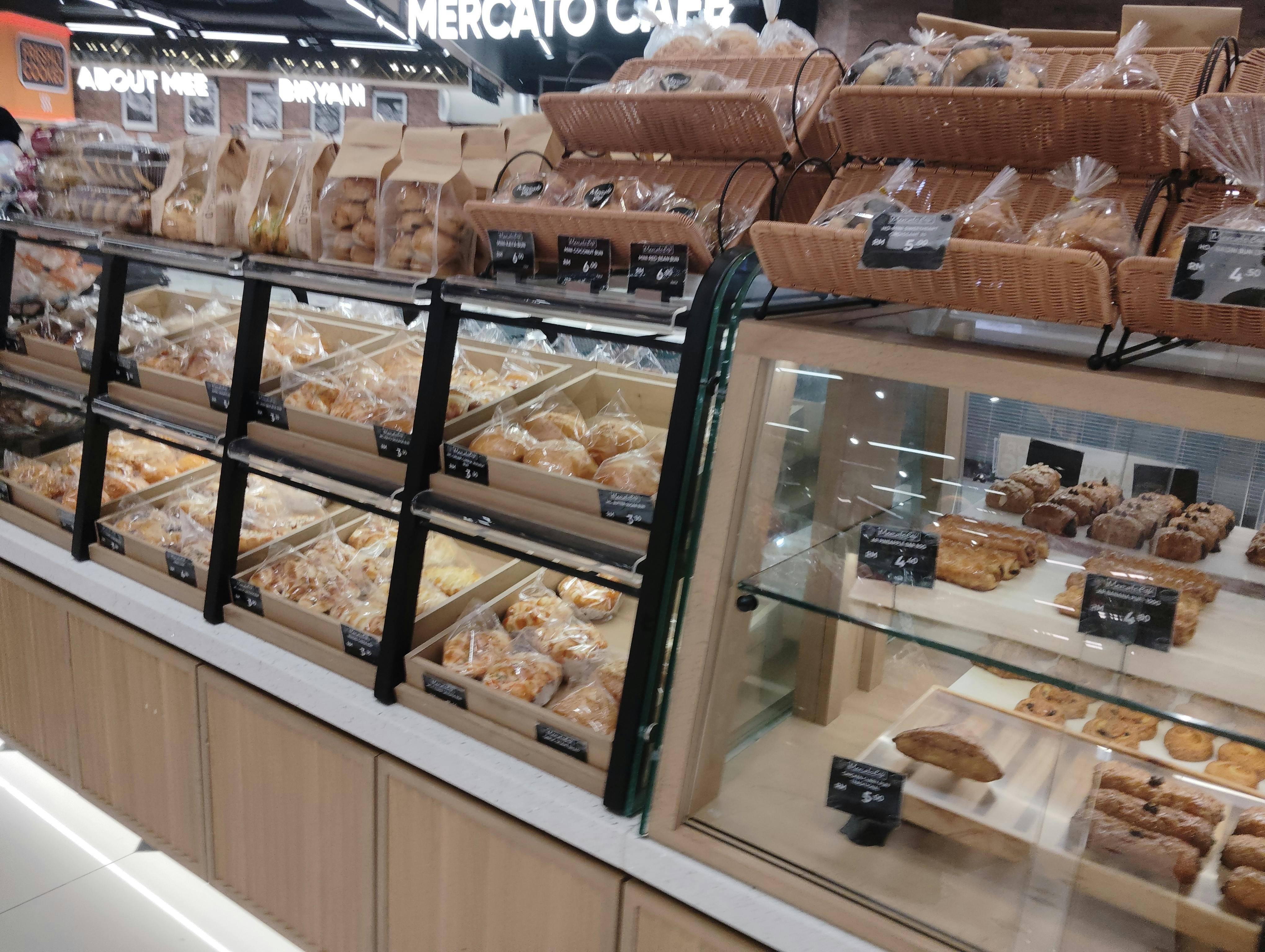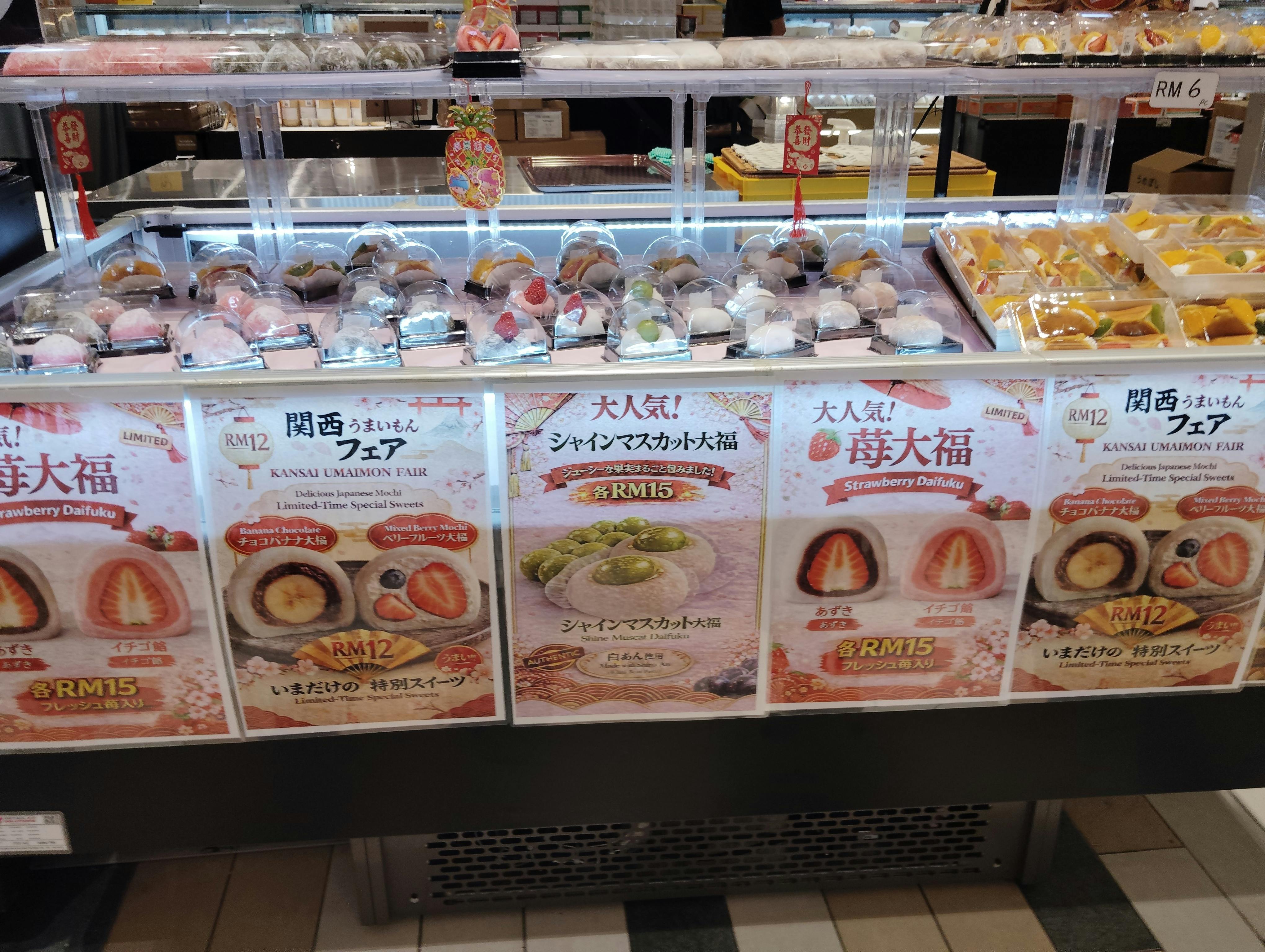 日本風のベーカリーコーナー、日本のお菓子、日本風のケーキなどを確認。