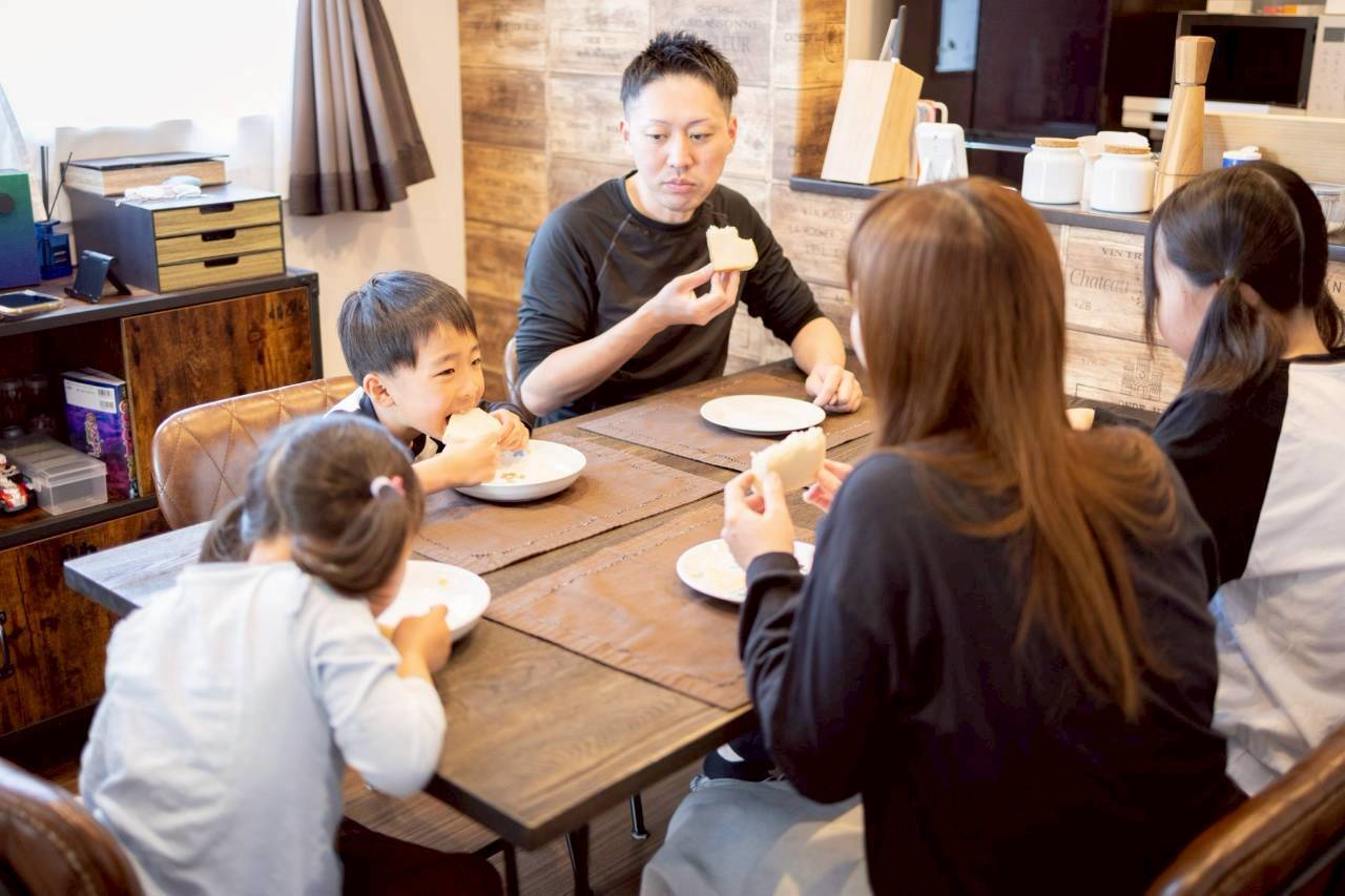 毎朝、家族と自家製パンを食べています。