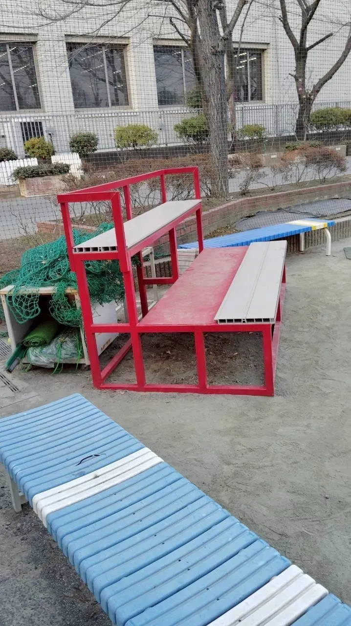 2つ目は····· バックネット裏の高そうなベンチです。 先輩たちが卒業に合わせプレゼントしてくださったのですが、 実はこれ、野球部OBの保護者の方が鉄工所をやられておられ手作りなんです!!!! しかも、日進中といえばの赤! 2段になっているので、6-8人ほど座れます。️ 練習や試合など、迫力満点です! よくお父さん方が、野球談義をしながら座ってます。 これ以外にもバットケースやけんすい鉄棒も作ってくださいました!感謝。感謝です。