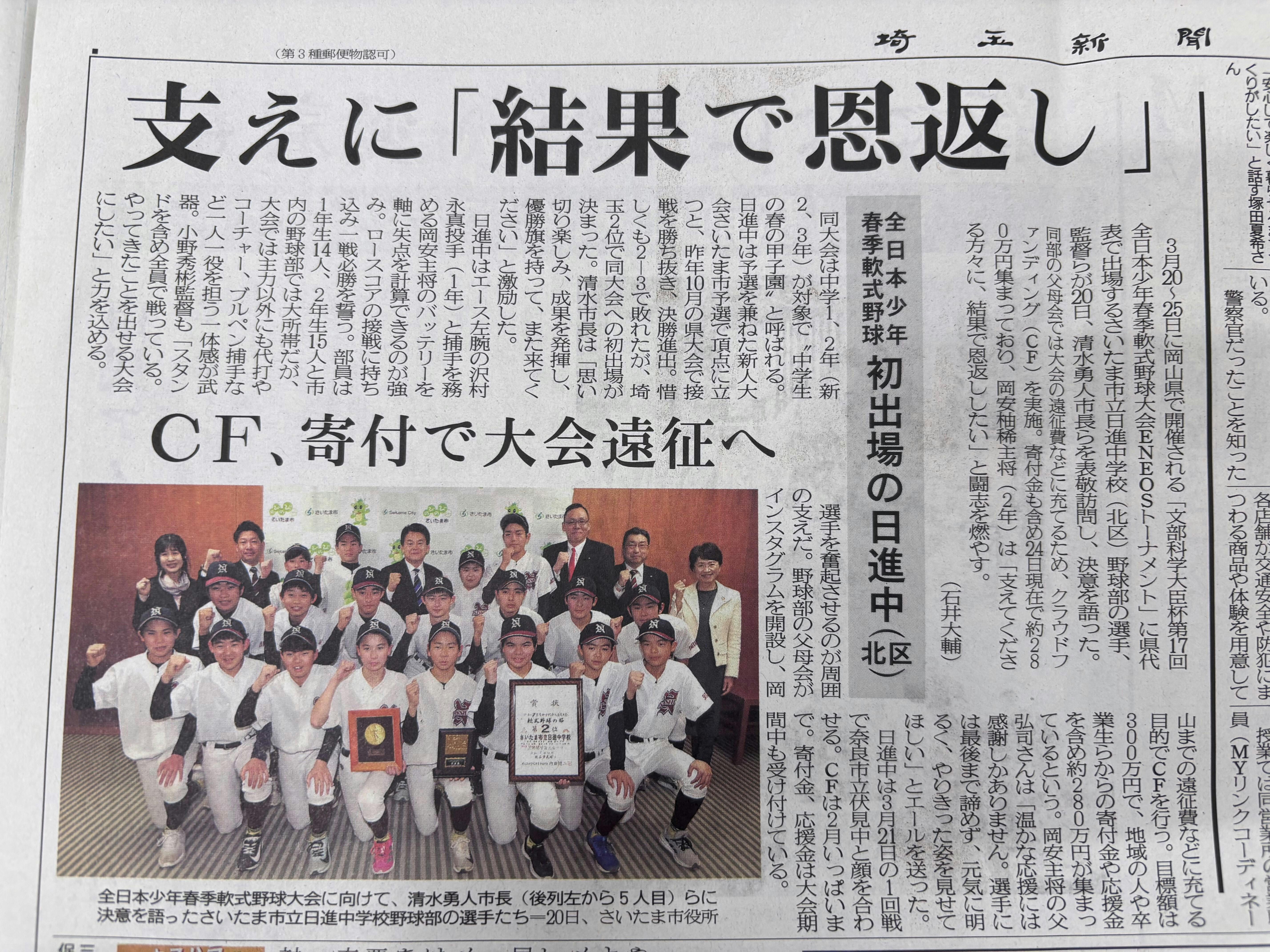 (支援期間残り3日)埼玉新聞に市長への表敬訪問の記事が掲載されました!