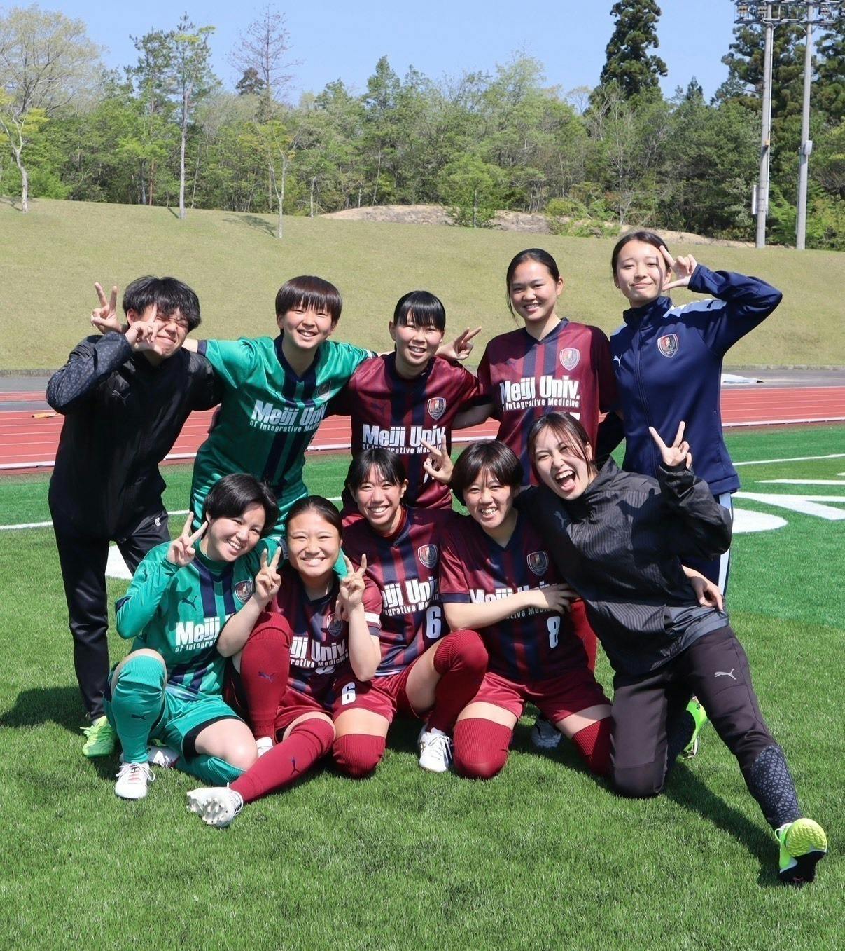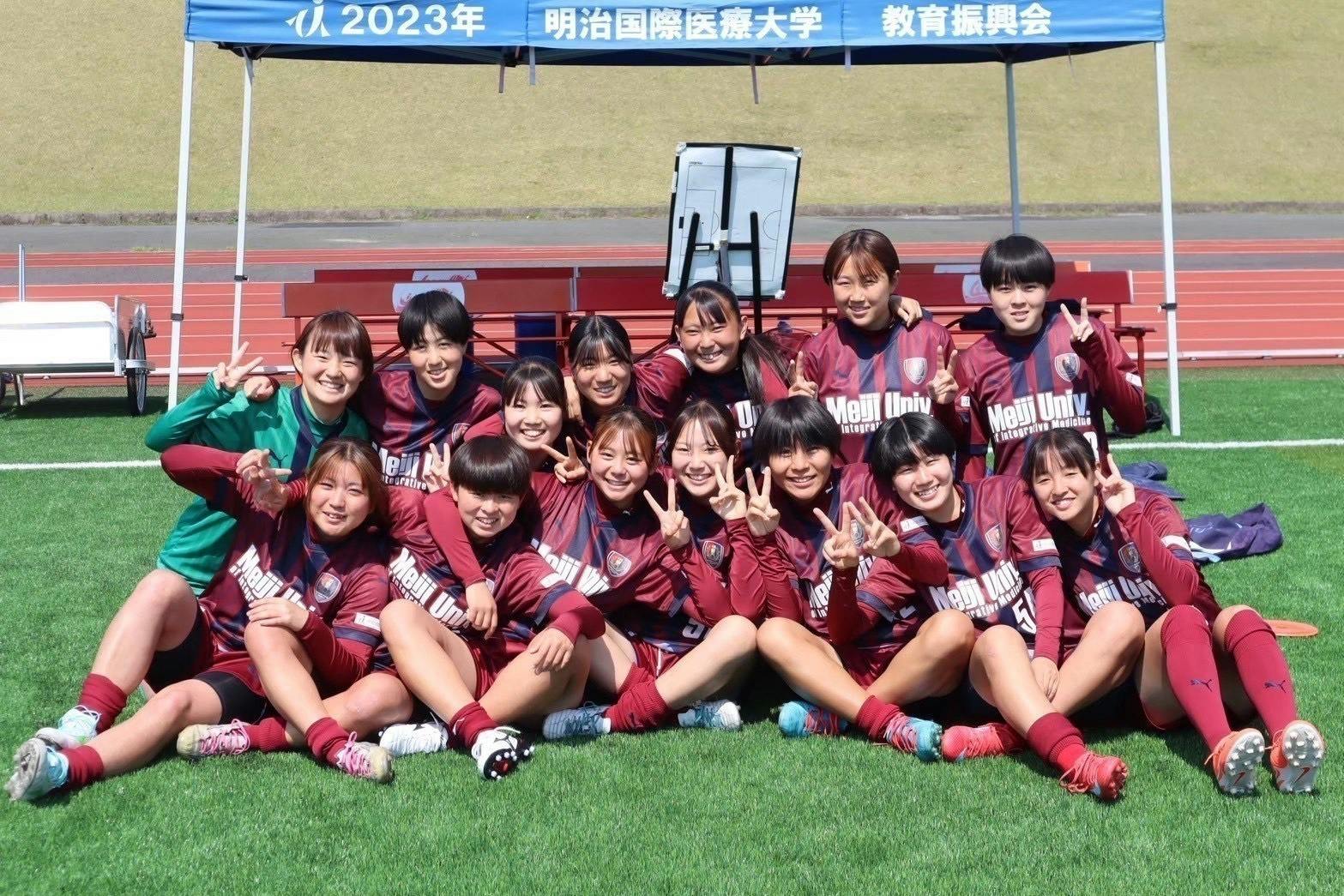 【2025年度 明治国際医療大学女子サッカー部活動報告】12月23日(火)より開催されました全日本大学女子サッカー選手権大会。明治国際医療大学女子サッカー部は1回戦敗退という結果となりました。先制点を取れたものの、その後追加点を取ることができず、後半残り時間もない中での失点。終始、自分たちのペースで試合を運べていたからこそ、悔やまれる失点となりました。その後、1-1の引き分けからPK戦へもつれ込む激闘となり、選手含め応援団、スタッフ一丸となり戦いましたが、惜しくも敗戦。目標としていたインカレベスト4の壁を超えることはできませんでしたが、スタッフ含む61名の大所帯でここまでこれたこと、全国大会を経験できたことは大変嬉しく思います。2025年度は今までで一番多くの部員が所属しており、全員が同じ方向を向くことの難しさや、部員全員と向き合う難しさを選手・スタッフ全員が感じました。そんな中でも、全員で工夫し、協力し合い「全員でサッカーを楽しむ」という事をモットーに1年間走ってきました。選手・スタッフは、多くの方々へ感謝しています。選手をサポートしてくださったご家族の皆さま、学校生活において何不自由なくサッカー・勉強に取り組める環境を作っていただいている学校関係者の皆さま本学を卒業したOGの方々本女子サッカー部を応援してくださっている方々、多くの支えがあって今回、このような貴重な経験ができたと思っています。選手一同、この先さまざまな形で皆様に恩返ししていくつもりです。2026年度は昨年度よりもさらに魅力ある、たくさんの方に「応援してもらえるチーム」を作り上げていきます。今後とも明治国際医療大学女子サッカー部のご支援・ご声援よろしくお願いいたします。