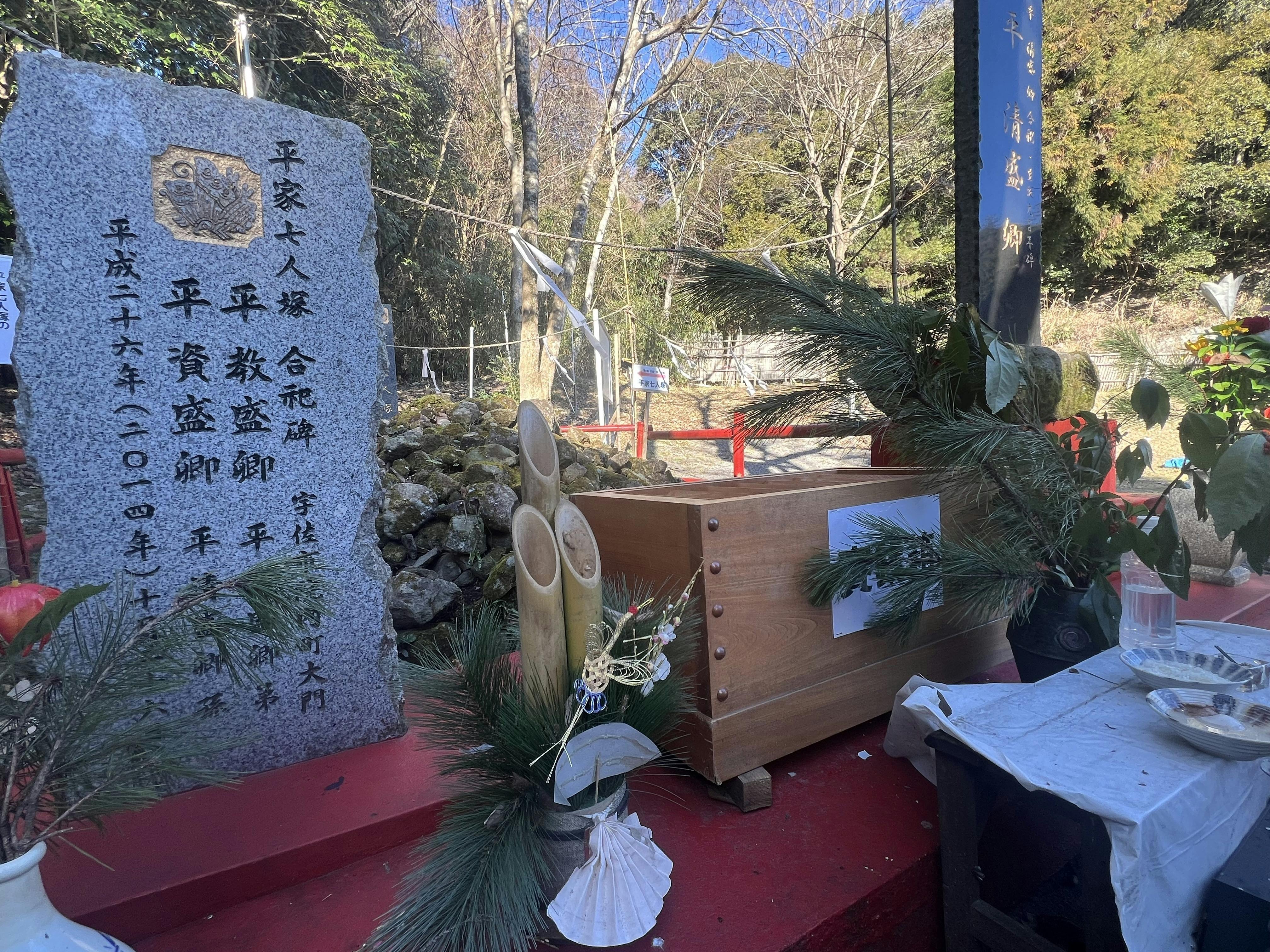 お正月期間なので平家七人塚はお正月仕様になっております。