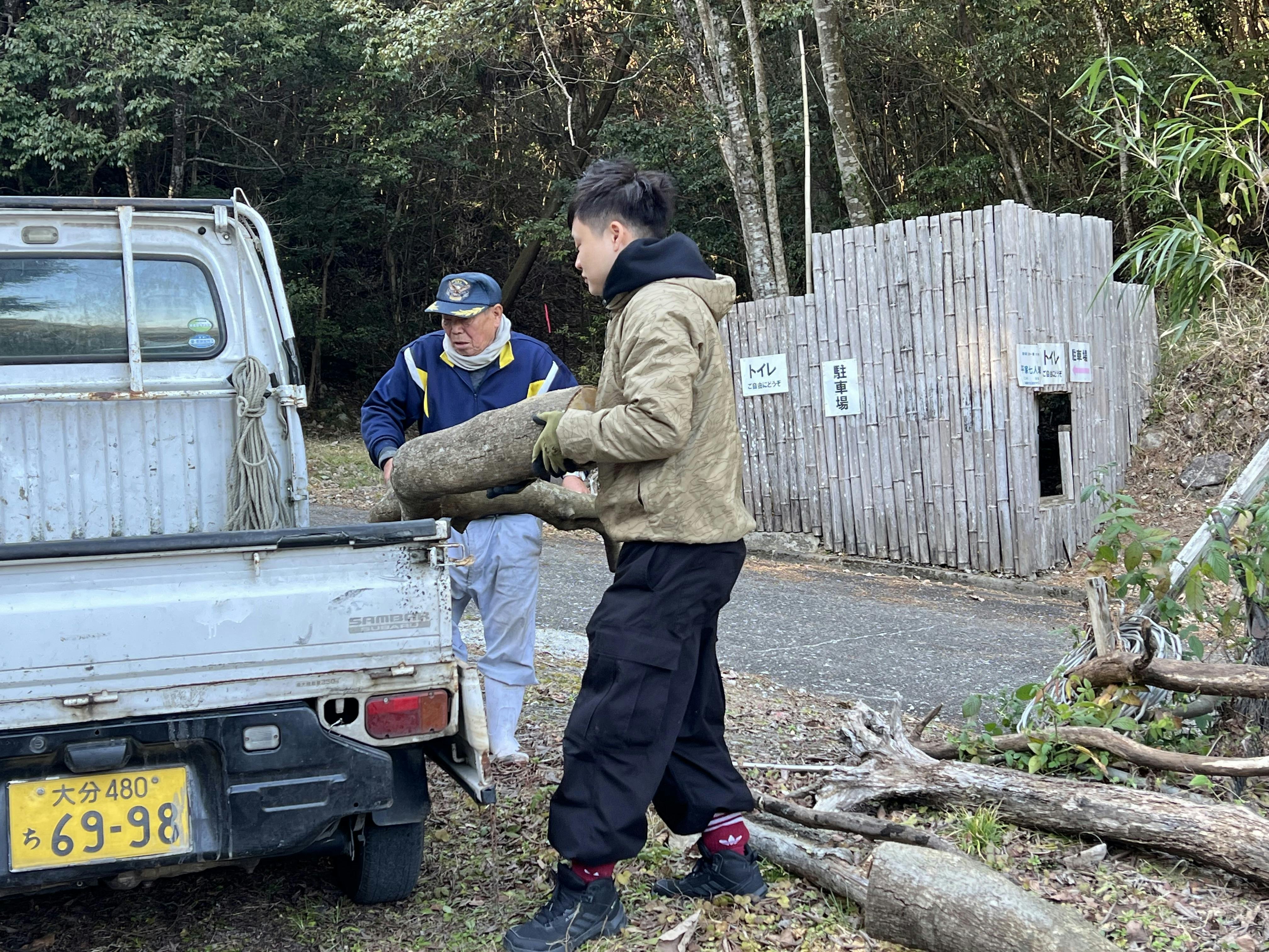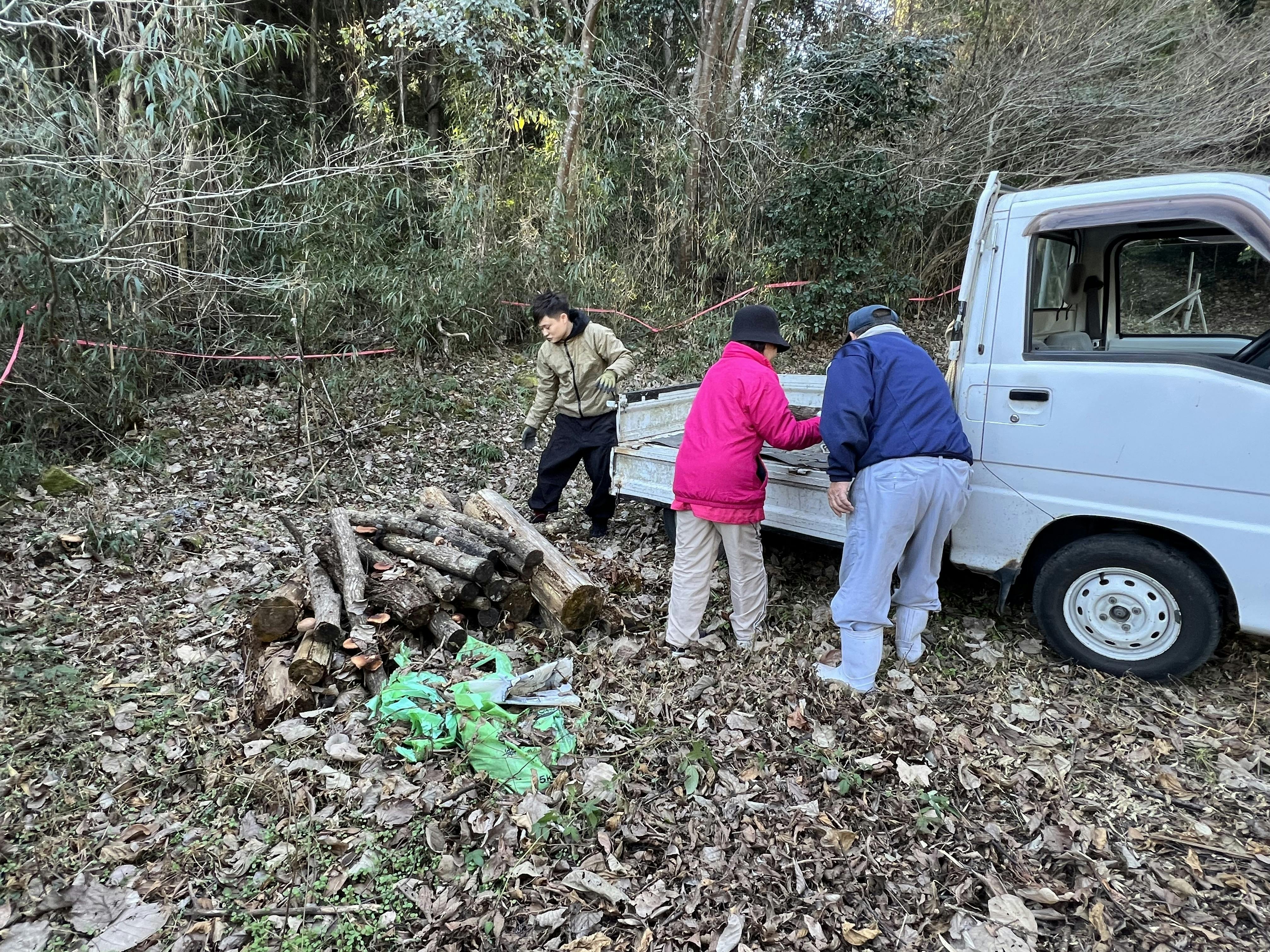 各所にあった切っていた木を軽トラに積み、一箇所にまとめて廃棄しやすいようにしました。