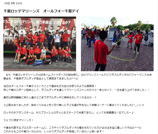 現在の活動は千葉県ダブルダッチ協会南房総支部代表として、館山市・鋸南町などで活動中です。子ども向けイベントなども行なっております。