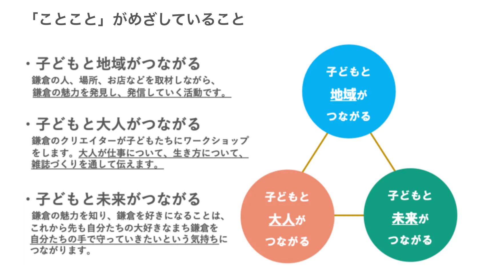 「ことこと」は、鎌倉で暮らす子どもたちが主体となり、企画・取材・撮影・編集まで行う“地域の子ども編集部”によるフリーマガジンです。