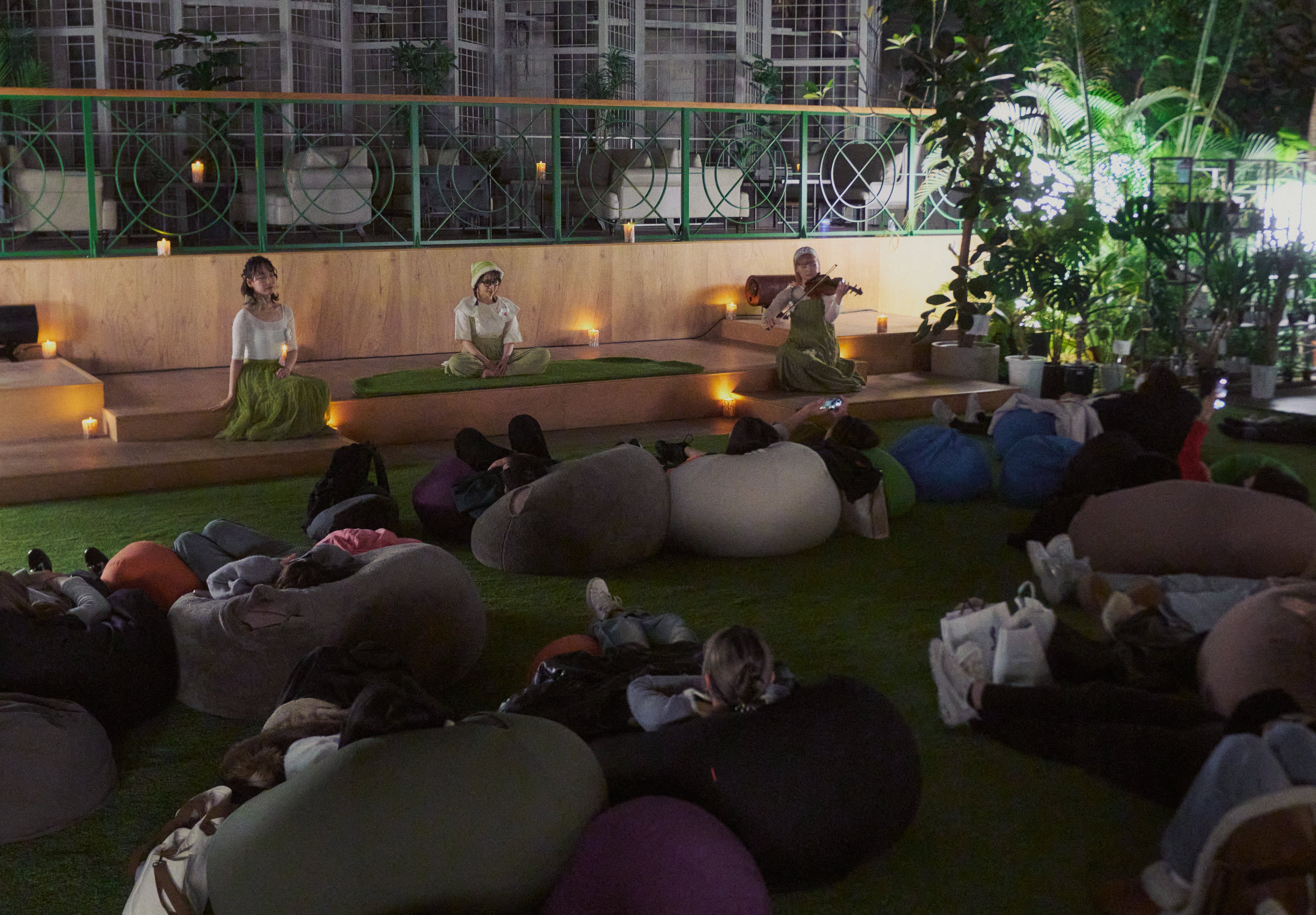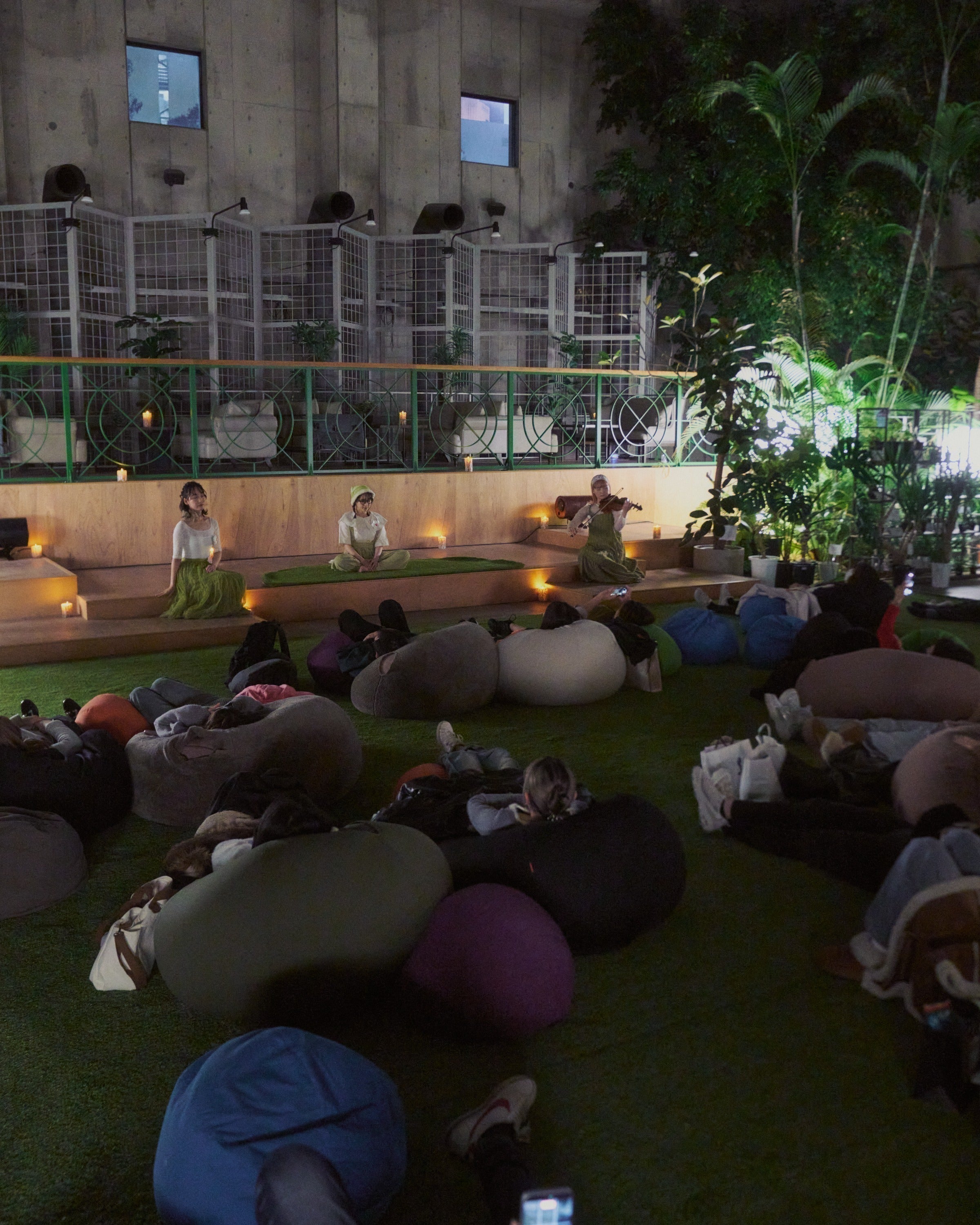 ・会場候補の選定・演出プランのブラッシュアップ・空間づくりに使用する芝・クッション・照明のアップデート・音響/映像の調整・巡回型へ向けた動線設計・出演者/スタッフの編成・会員証リターン(デザイン)の制作