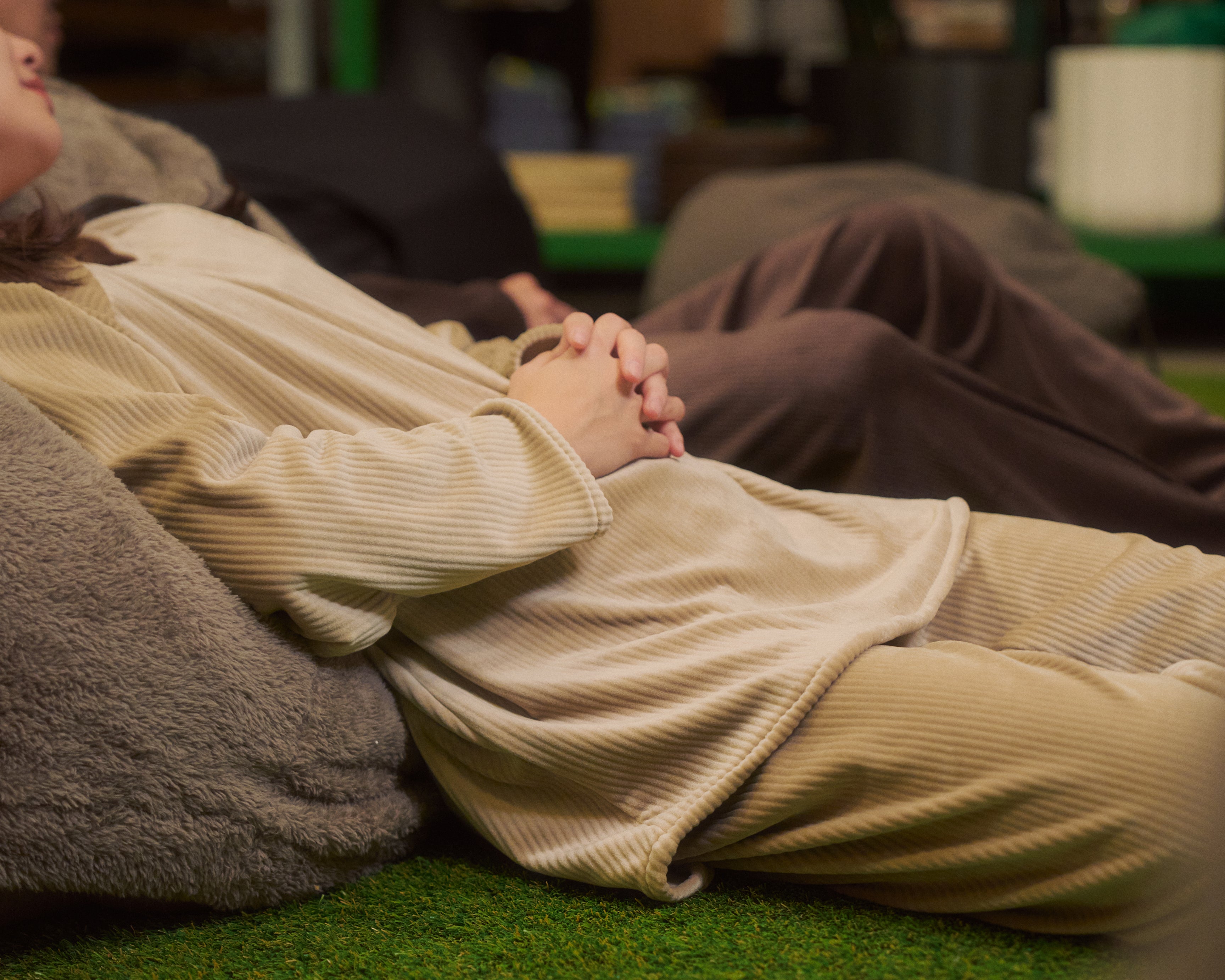 心と身体がふっとゆるむ時間” を届けたいという想いから生まれた、ただくつろぐためだけのルームウェア。やわらかな肌触りとリラックスすることを邪魔しないミニマルなデザインで、考えるよりも、ただ感じることに集中できる一着です。柔らかな生地が身体をまるごと受け止め、座る・横になる・寝転ぶ・深呼吸する。どんな姿勢もストレスなく自由に過ごせます。自宅でも、外出先でも、旅先でも、“心をほぐすための服” として寄り添い、あなたのリラックスタイムを静かに支えてくれます。