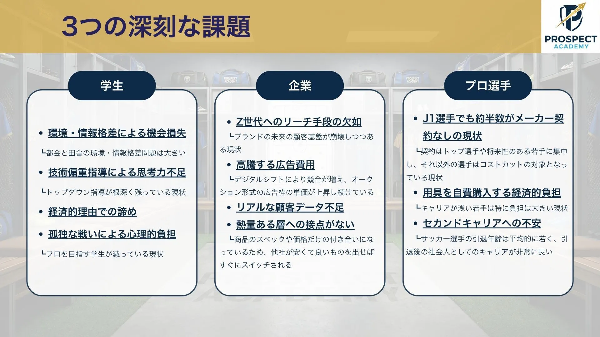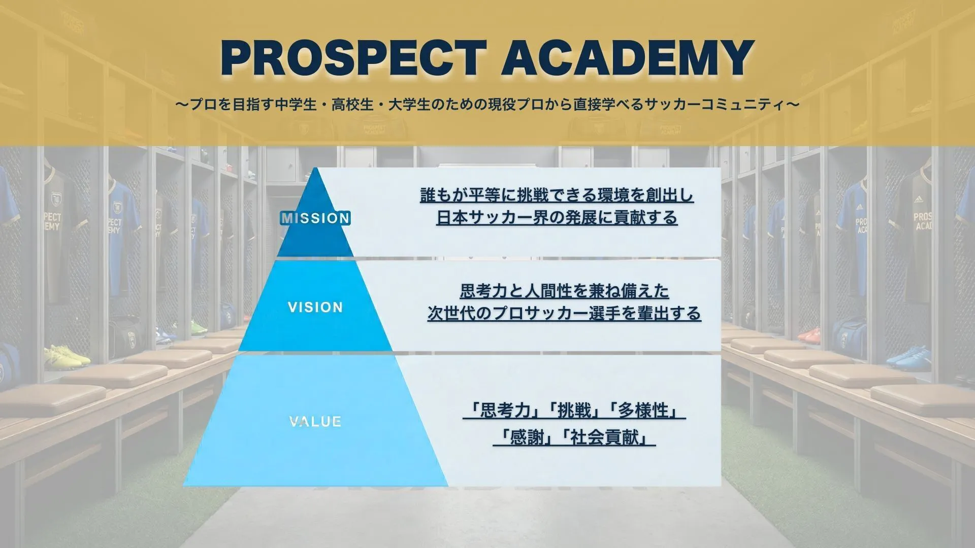 PROSPECT ACADEMYはサッカー選手を目指す学生のためのオンラインコミュニティです。