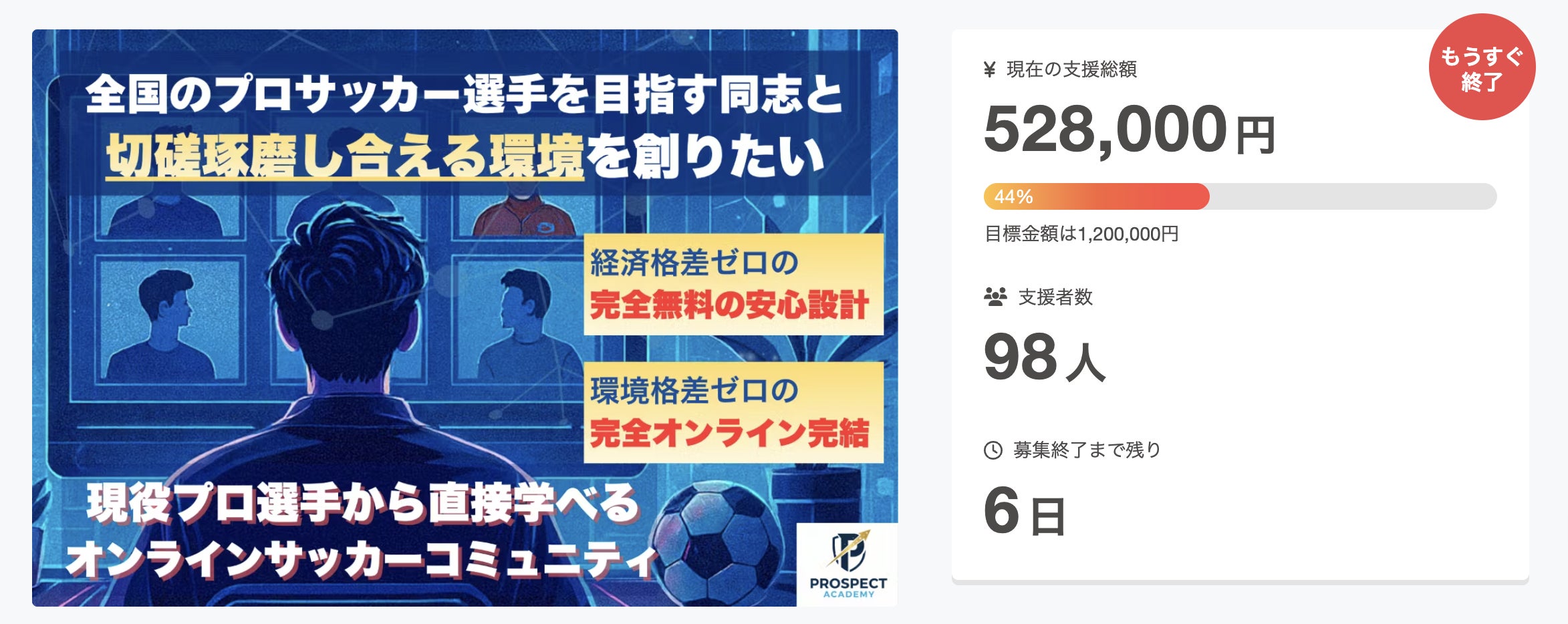 2026/01/25 14:06残り6日となり、現在のご支援総額は528,000円で、支援者数は98名となりました。これまでご支援いただいた98名の皆様、本当にありがとうございます!毎度言ってはいますが、諦めずにもがき続けます!!本日は「学生の頃の私は」というテーマで書いていこうと思います。今は26歳となり、プロを目指すサッカー人生ではなく、プロを目指す学生を応援する立場になりました。そんな私が学生だった小・中・高・大学生だった頃、どんな学生だったのか。紛れもなく事実なのは、「プロを目指していた」ということ。まずは小学生福島県伊達市の田舎町で生まれ、本格的には小学2年生から地元の少年団に入ってサッカー人生をスタートさせました。正直その頃はうまかったと思います。割と思うように体を動かすことができるタイプで、運動神経だけで点をとるFWからゴールを守るGKまで卒なくこなすオールラウンドプレーヤーでした。田舎の中ではもちろんどんな試合でも活躍できている感覚はあり、「俺に任せろ」と試合中もよく言っていた少し恥ずかしい記憶もあります。中学生ベガルタ仙台に合格をきっかけに親元を離れ、祖母と二人で宮城県へ移住しました。チームでの活動初日の感想は、「無理だ」以外何も出てこなかったです。福島の田舎で活躍していると勘違いしていた一人の少年が、東北で一番レベルの高いチームに受かってしまったことで、伸びきっている鼻は完全に折られました。それからの3年間は、試合に出たり出なかったり。同期のライバルが、中学3年生で難関校への受験に切り替えるため退団したことで、自動昇格のようにユースへ。高校「同期がいなくなったからだ」という多少、いやかなり多めなネガティブを心に潜ませながら活動初日を迎えたことを覚えています。ただ、高校1年の間は国体選抜に選ばれ、実際に宮城県国体を全国出場に導いたりと順風満帆なサッカー人生とも言えた気がします。しかし高校1年から2年生に上がるタイミングで慢性的な疲労から腰の大怪我でチームから1年半の離脱を強いられます。復帰したのは3年の夏で、プロになるには、いい大学にいくには何よりも大事な全国大会は、現在アビスパ福岡でゴールキーパーとして活躍する小畑裕馬にスタメンを預け、ベンチ外。3年時はキャプテンであったのにも関わらず情けない想いでした。この頃です、完全に「プロ」を諦めたのは。もちろん怪我だけではなく、GKにしては低い178cmの身長も、言うまでもなく技術も、全て。ここで完全に自分に負けました。大学私はご縁あって城西国際大学という千葉県の大学へスポーツ推薦で進学することができました。人生での転機は大学と言っていいでしょう。プロになる人間のレベルを間近でたくさん体感し、本格的に諦め、「起業」という道に走りました。原動力は「プロになったあいつより稼ぐ」。これ一心でビジネスの世界へ足を踏み入れました。これまで綴ってきたのは思い出ではなく、ただの時系列順の出来事です。共通して伝えたかったのは、「弱かった」ということなんです。レベルの高い環境に気持ちで負けました。ユース昇格というポジティブすらネガティブに捉えてしまう弱さに負けました。怪我に負けました。「あいつより稼ぐ」という他人軸での生き方で、向き合うべき自分に負けました。ここまで自分の隠したい過去を全て曝け出す理由はただ一つで、こんな自分のような人間が必ずいるはずと思うからです。チームスポーツをやっているはずなのになぜか個人戦を凝り広げ、勝手に何かと比べて負け続けている学生が必ずいると思うからです。私はそんな学生の潜在的、うちに秘めている良さを引き出せるような環境を作っていきたいと思います。いつしか学生の頃、俺より下手だったやつが今プロで活躍しています。いつしか学生の頃、日本で知らない奴はいないほどうまかったあいつは今、プロになれず普通に働いています。どんな人が、果たしていつ花開いていくかなんてわからないんです。私はプロになれなかったけど、私にしかできない形で後輩たちの「プロになる」という夢を応援していきます。長くまとまりのない文だったと思います。最後まで読んでいただきありがとうございました。PROSPECT ACADEMY 代表 伊藤 もっと見る【残り9日】冷笑文化