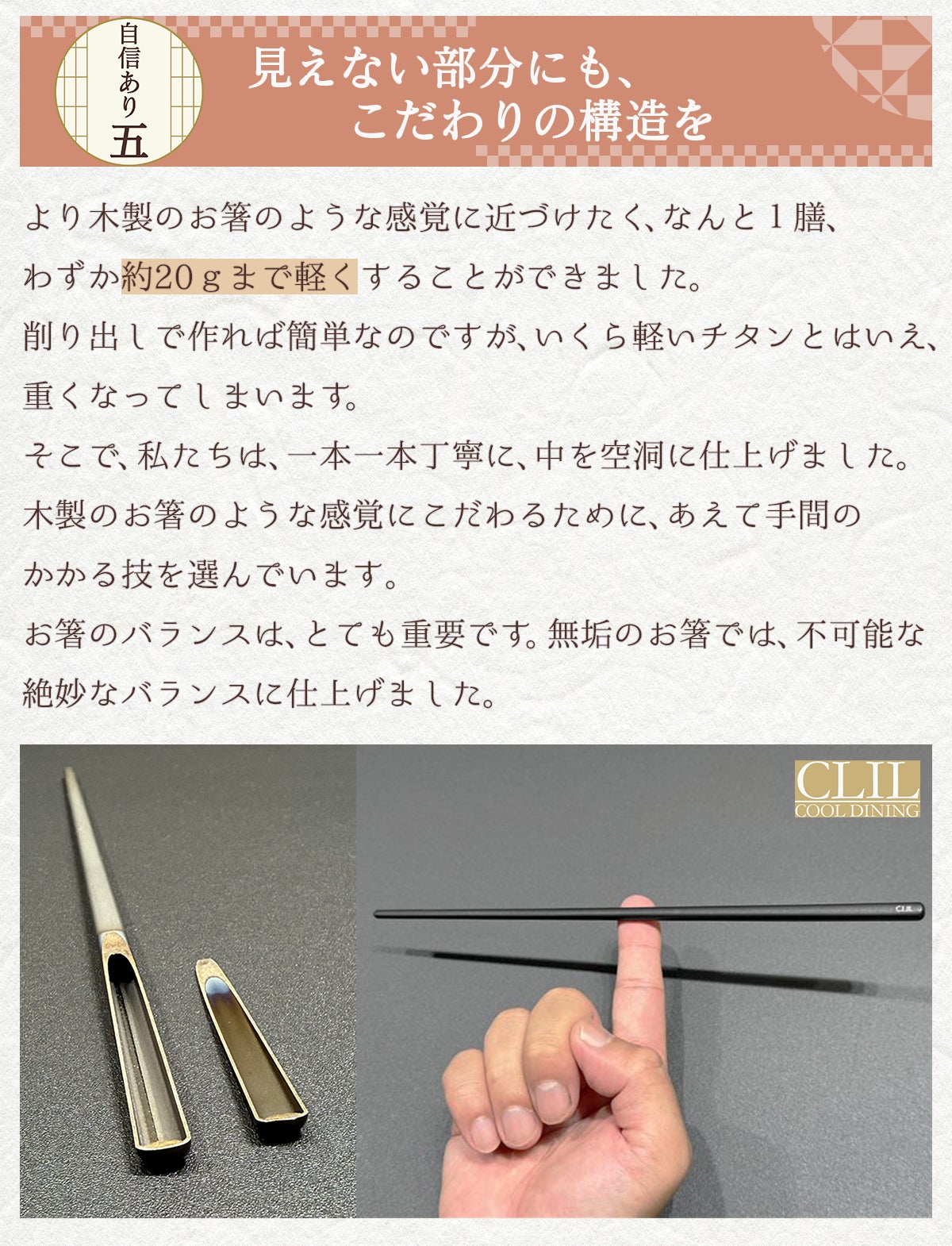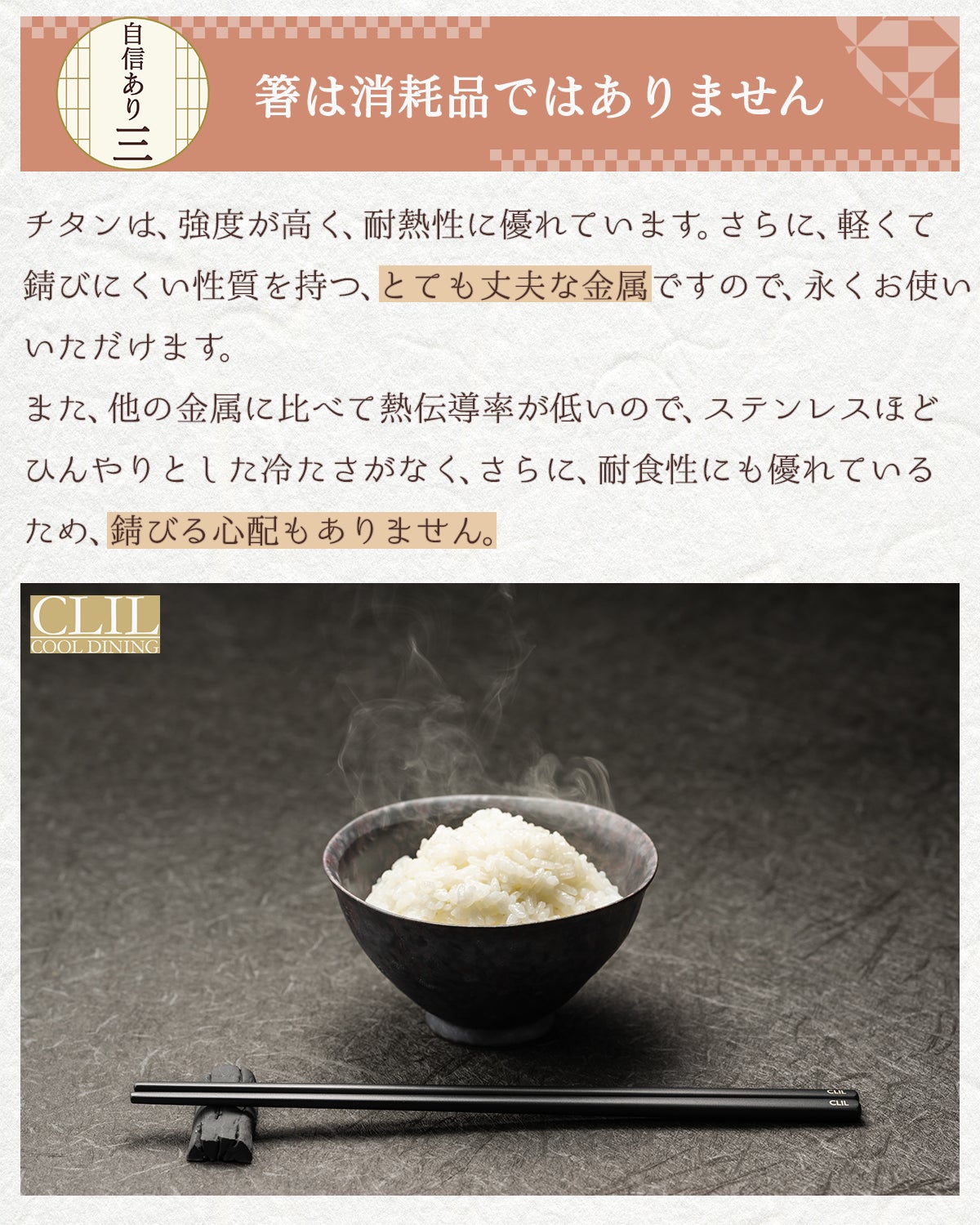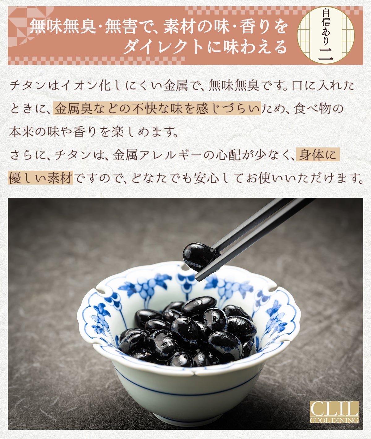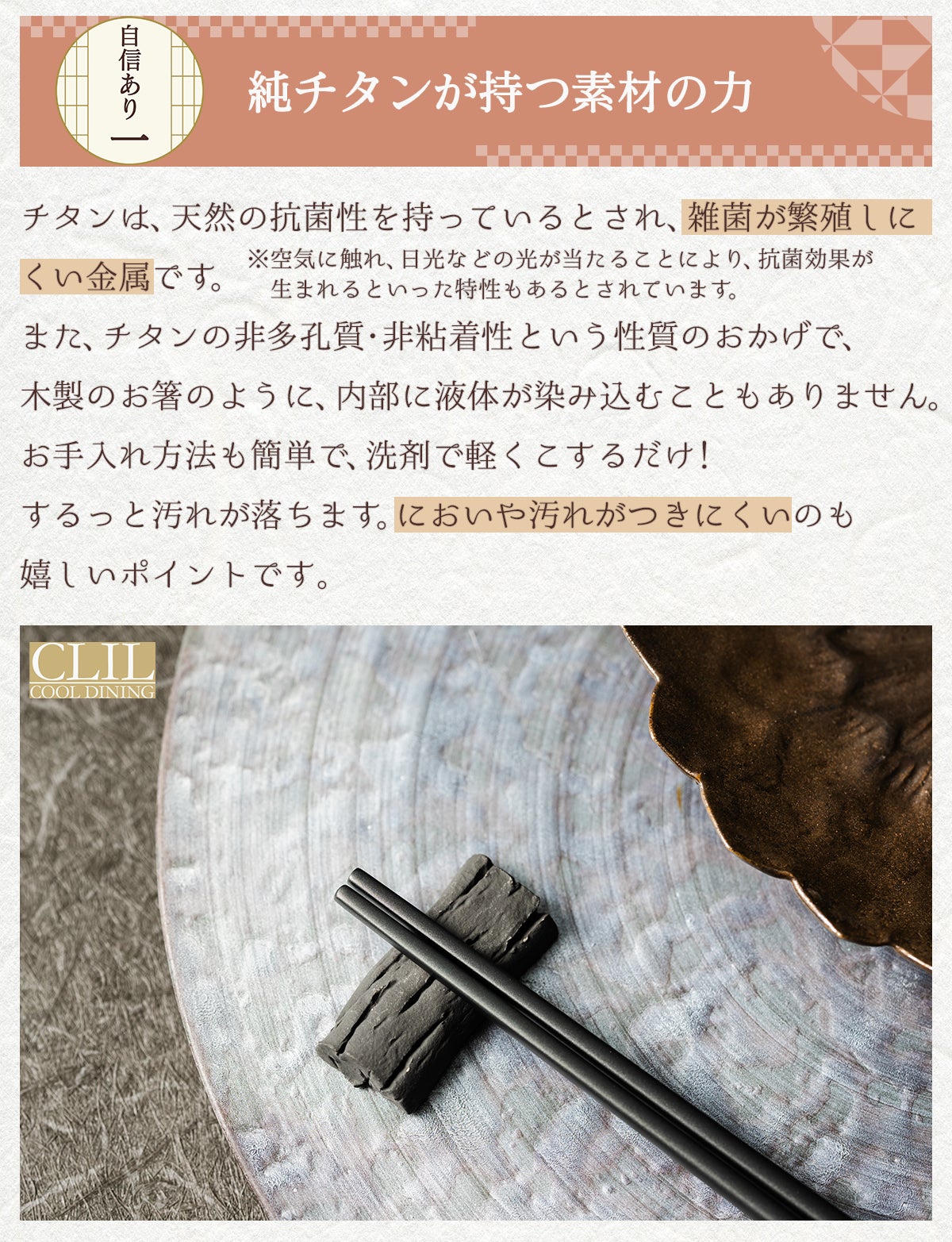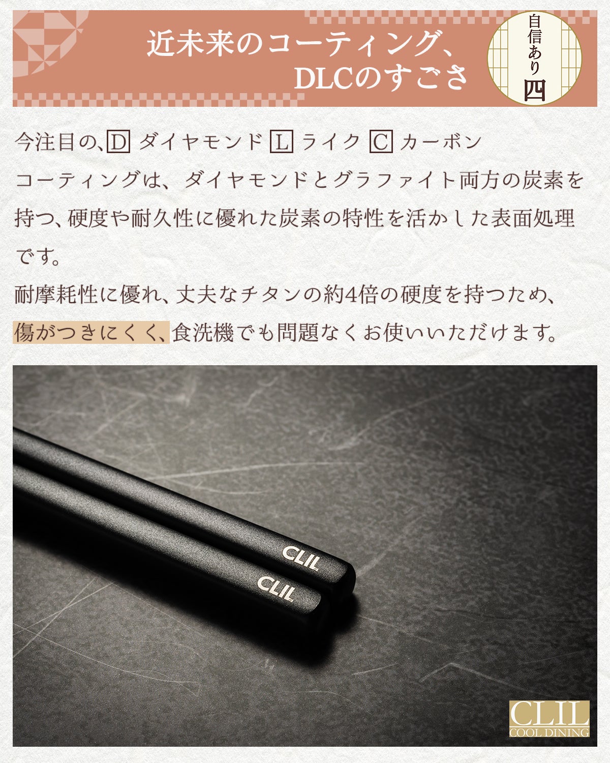 今回は「COOL DINING CLIL」から、純チタンDLCコーティングの箸のご提案です。