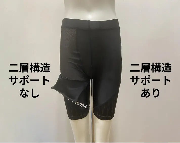 ・本品は独自の二層構造による脚の振り出しサポートと、スポーツ時の安定した構えの姿勢を促すことで、パフォーマンス維持を目的としたアンダーウェアです。用途以外のご使用は怪我や破損の原因となりますのでお止めください。